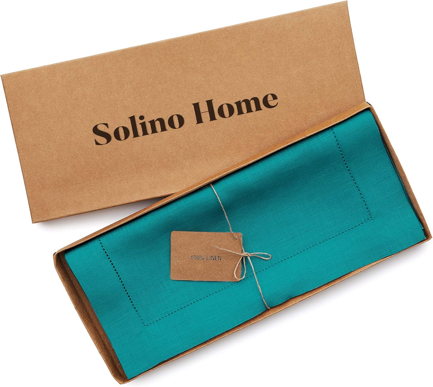 Solino Home Linen Teal Table Runner 132 Inches Long - 100% Pure Linen Extra Long Table Runner 14 x 132 Inch for Fall, Autumn - Classic Hemstitch