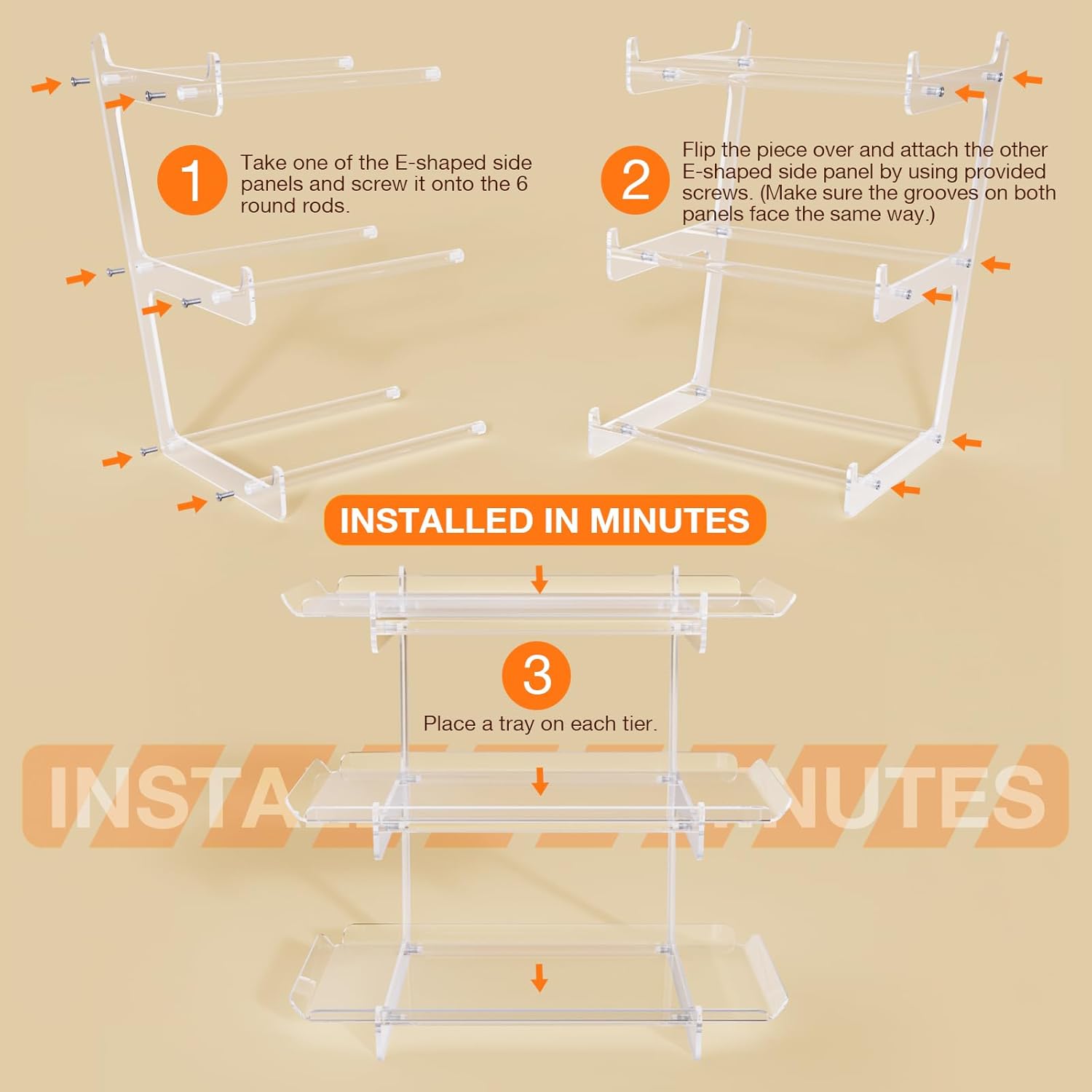 - Premium & Safe Construction:Crafted from food-grade, BPA-Free certified acrylic, the Bakzon 3 Tier Serving Tray ensures ultimate safety and durability. Its shatterproof design and non-slip E-shaped frame provide unmatched stability, making it perfect for displaying desserts, fruits, or appetizers—no tipping, no damage, just peace of mind.