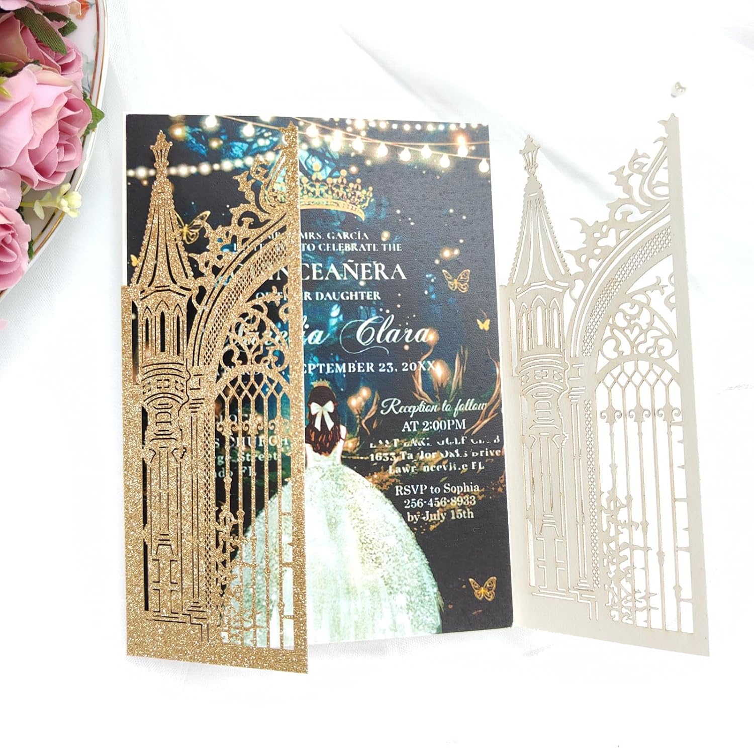 20PCS Laser Cut Wedding Invitations,Wedding Invitation Card Pocket,Quince Invites,Sweet 16 Invitations,Quinceanera Invitations,Laser Cut Invitations For All Occasions