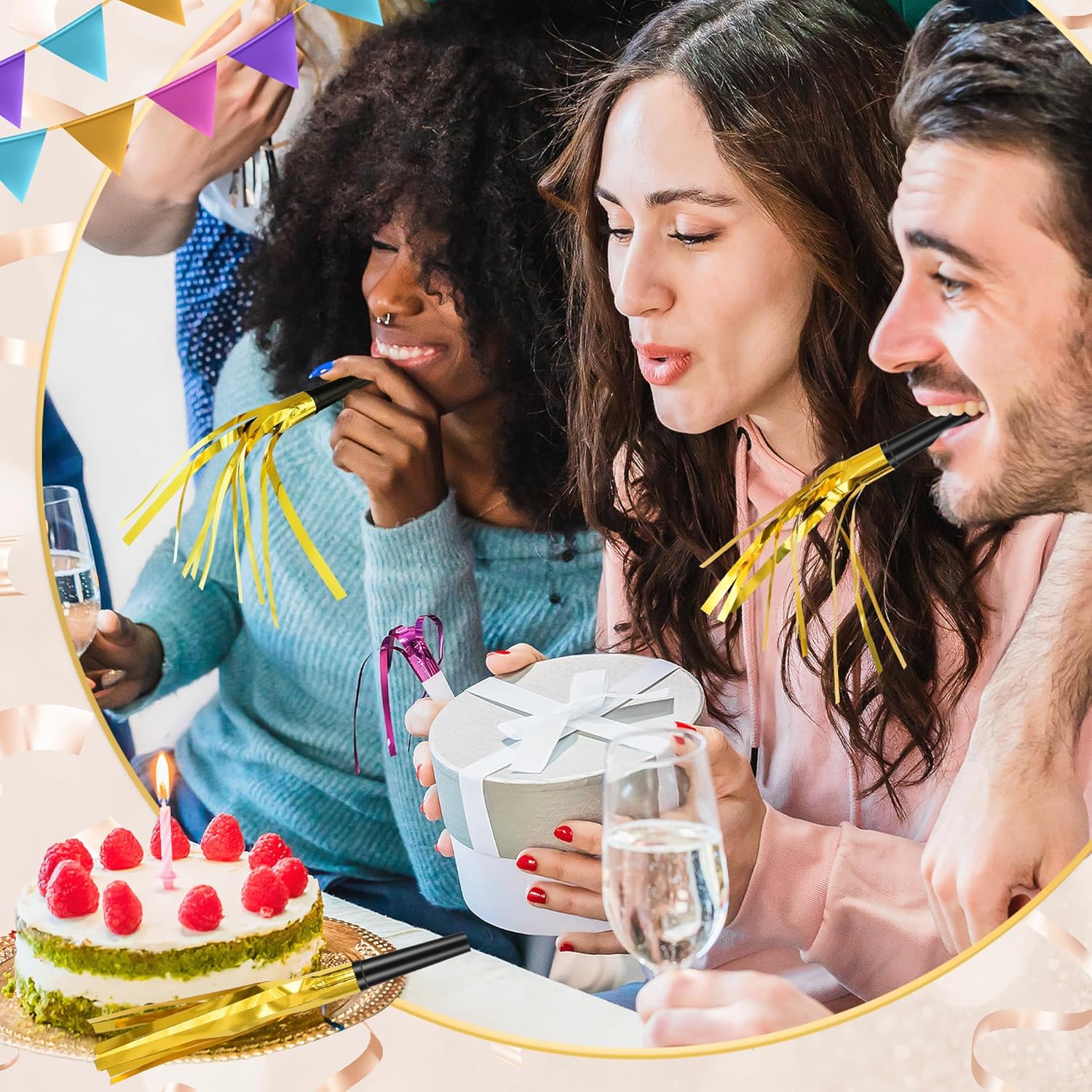 24 Pcs Glitter Noise Makers Metallic Fringed Party Blower for Adults Birthday Graduation New Years Party Favors Supplies (Gold)