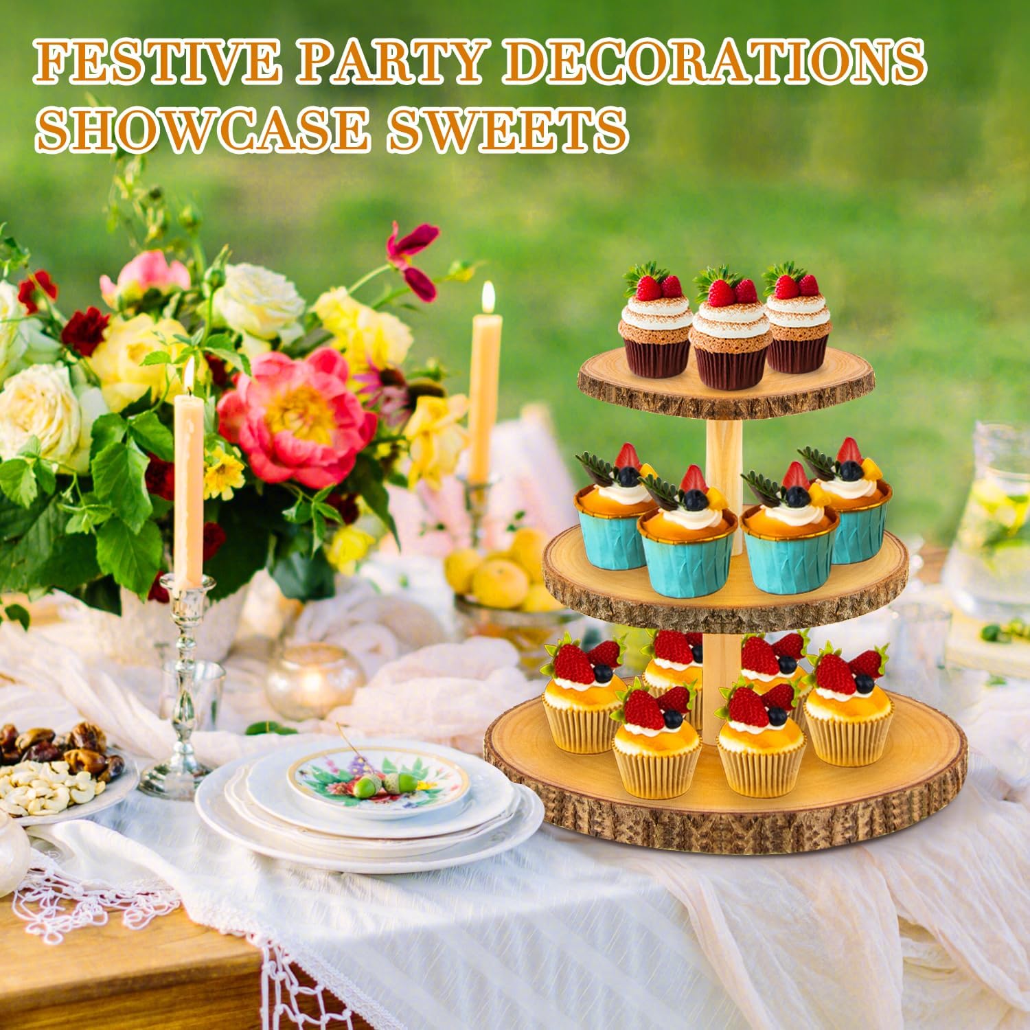 - Sturdy Bark-Covered Middle Rod: Each tier is made from 100% natural wood with a bold, bark-covered central rod that ensures stability and adds an extra layer of rustic charm to your event setup.