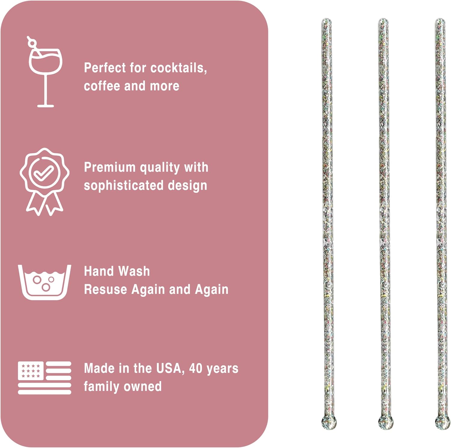 - Durable and Reusable: Crafted with long-lasting materials, these glitter sticks are sturdy and reusable, so you can enjoy them at countless gatherings. No more wasteful disposable stirrers—these durable, eco-friendly party drink essentials will sparkle in your drinks for years to come, perfect for rainbow parties, pride events, and any celebration that needs a little extra flair.