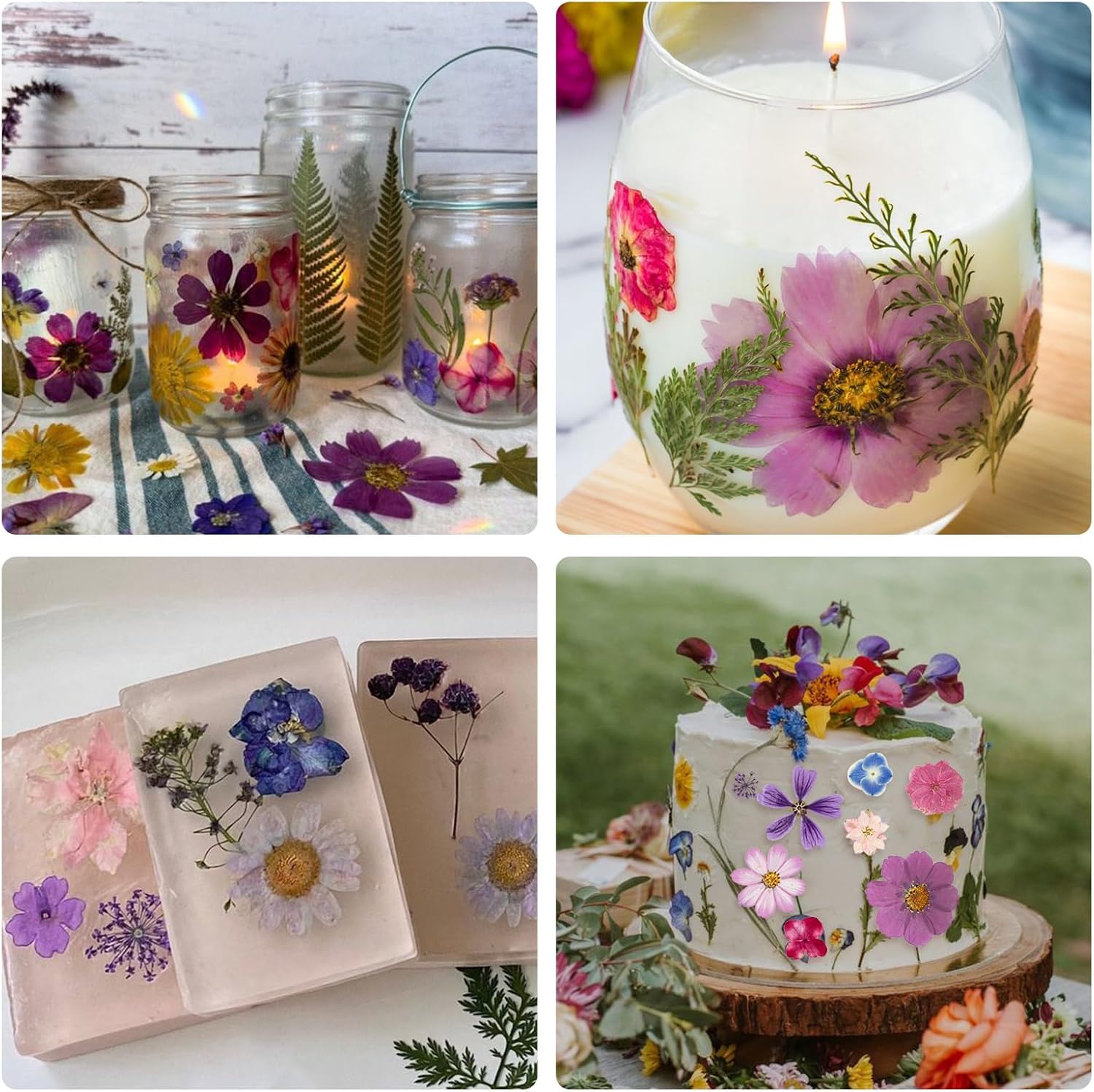 - Spring DIY Crafts: Our pressed flowers and leaves are mainly light purple, pink and yellow, suitable for spring craft making. You can make bookmarks, greeting cards, picture frame decorations, candle making, mobile phone cases, scrapbooks with family on holidayt can also be used for wedding decoration, home decoration, party arrangement, photography props, gift giving, etc.