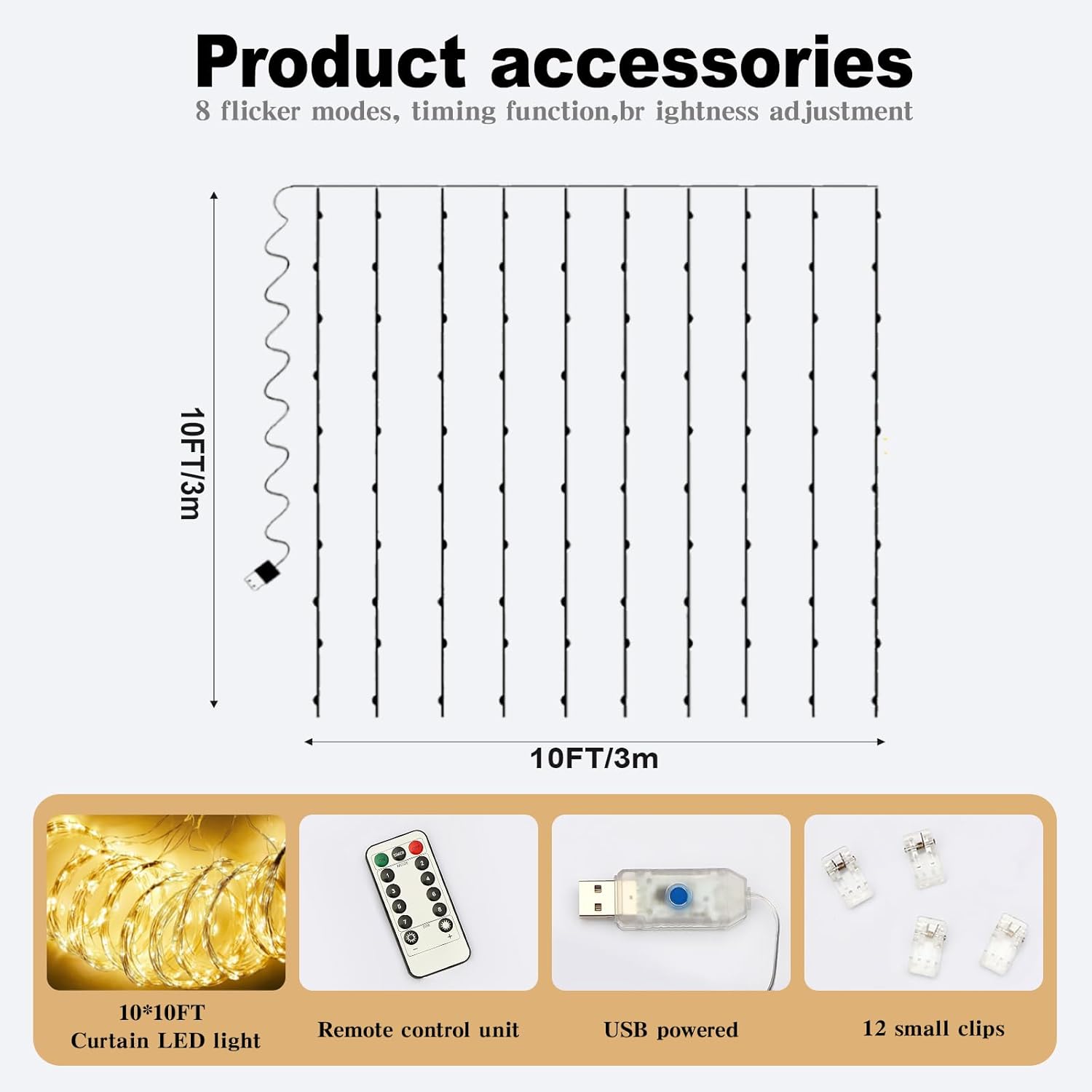- Installation of the String Lights: The string lights come with 12 transparent clips. During installation, use the clips to attach the light wires to the curtain. The string lights can be powered by USB interface. These string lights are sturdy and durable, so you can install them with confidence.