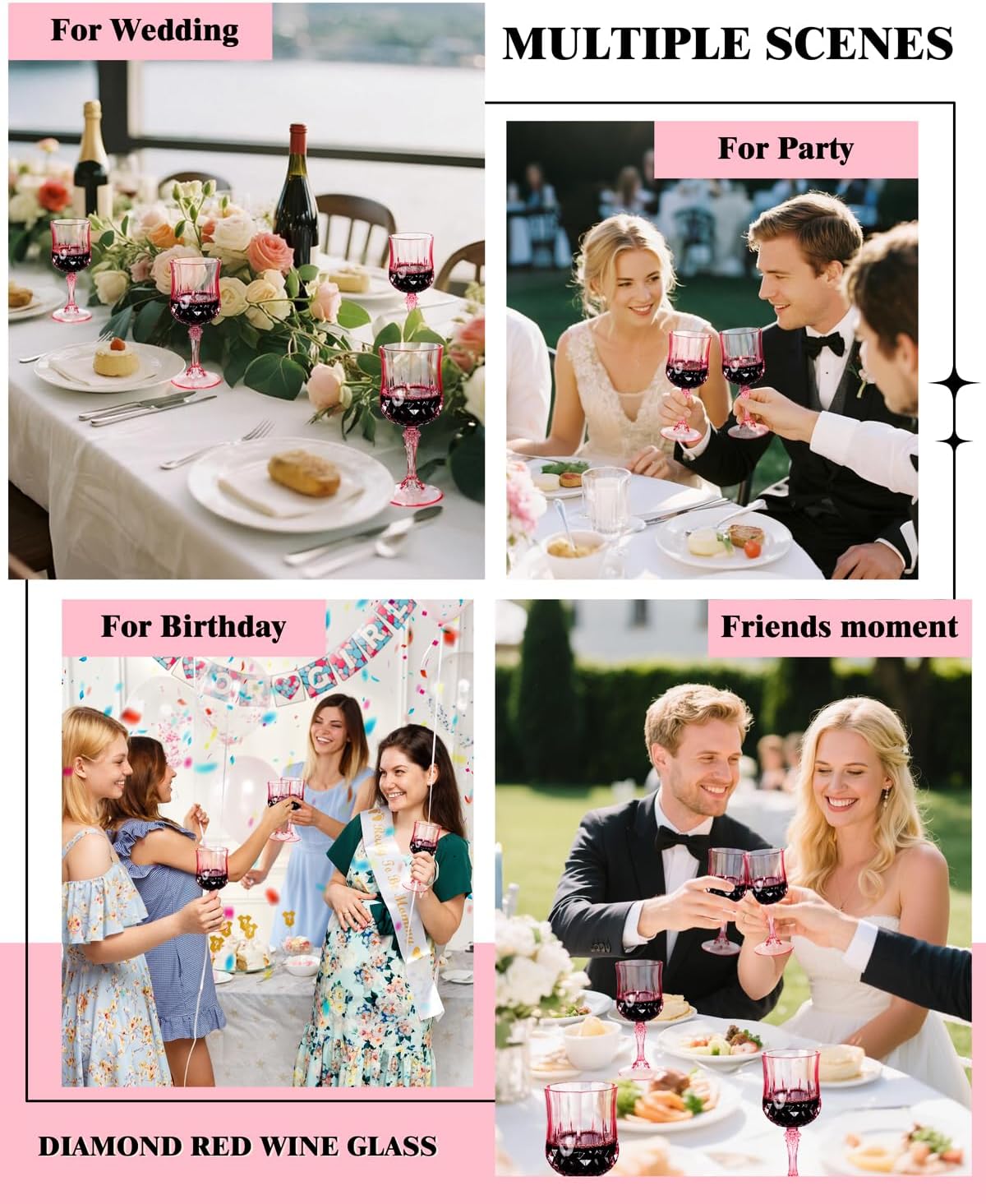 Ciaell 24PCS Pink Plastic Wine Glasses - 7 Oz Plastic Goblets for Party - Pink Vintage Drinking Glasses - Disposable Water Goblets Set for Wedding, Bar, Wine, Beer, Juice, Cocktail, Whiskey
