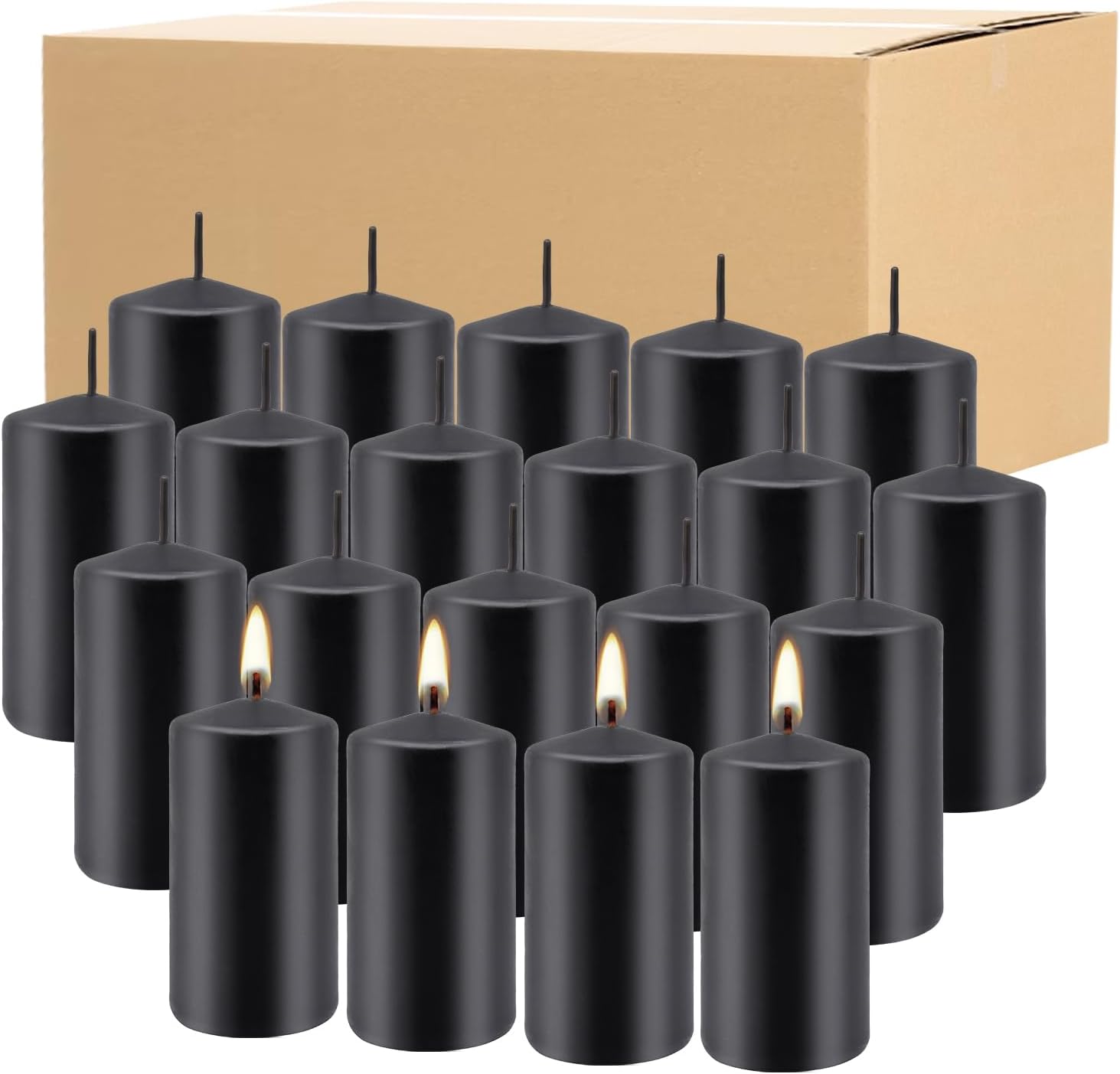 Set of 20 | 2X 4 inch Tall Pillar Candles, Soy Wax. Perfect for Candlelight Dinner, Home Decoration, Party, Wedding.(Black)