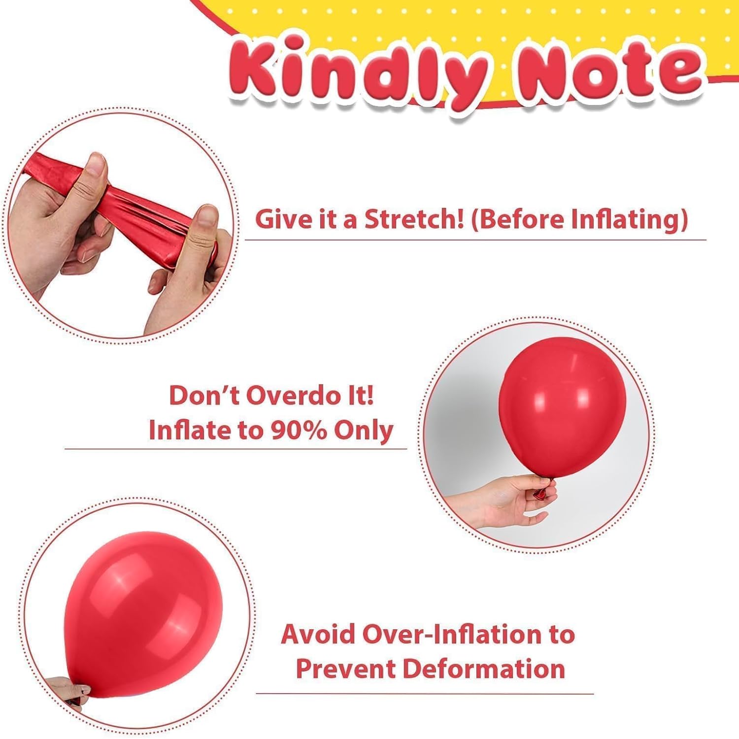 - Party-Ready Tips: Please be careful not to overfill the balloon to avoid bursting,away from sharp objects and direct sunlight to prevent damage. Please note that it is normal for 2-3 balloons out of the all to have some damage or small holes. If you have any questions or need assistance, please don't hesitate let us know.We will help you within 24 hours.