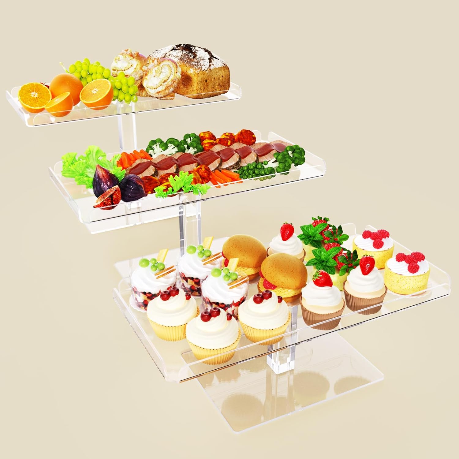 - Sturdy Cupcake Stand: Unlike flimsy cardboard or budget plastics, our dessert stands are crafted from durable, transparent acrylic, offering lightweight yet reliable support. The sturdy support pillars ensure exceptional stability and weight capacity.