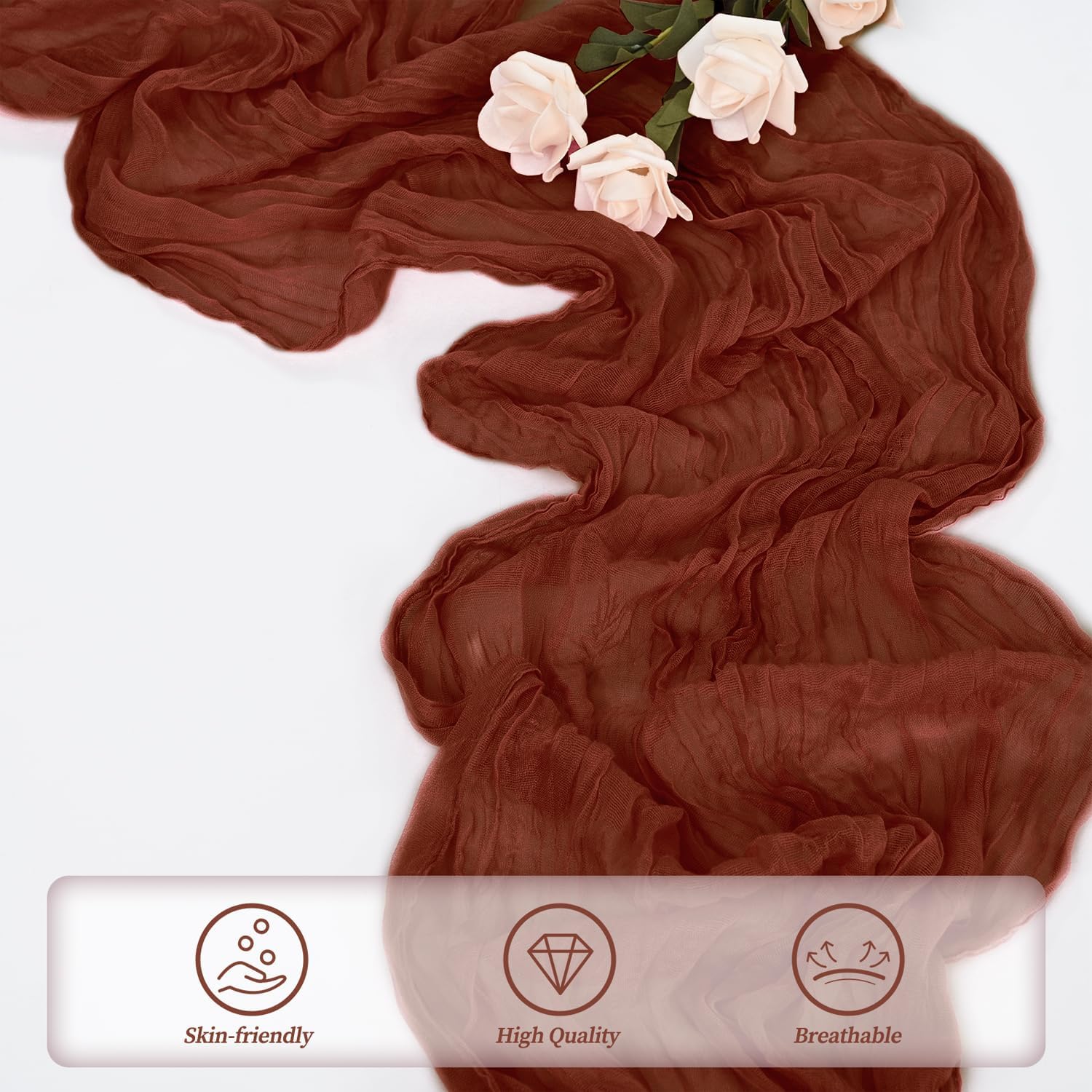 12 Pack Terracotta Cheesecloth Table Runner 10FT Boho Rustic Cheese Cloth Table Runner for Wedding 20 x 120 Inch Long Bridal Shower Baby Shower Gauze Fabric Sheer Birthday Party Table Decorations