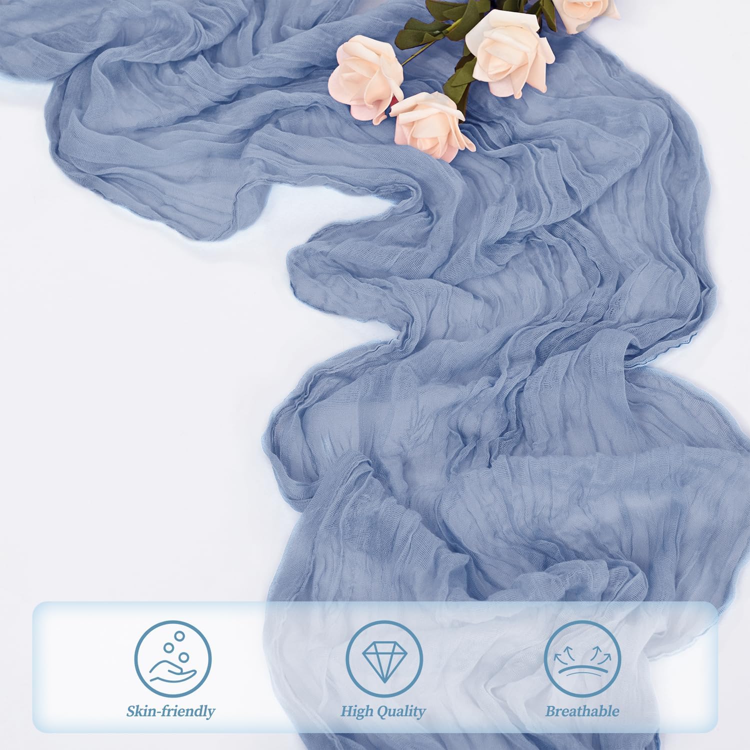 12 Pack Dusty Blue 10FT Cheesecloth Table Runner Rustic Gauze Fabric Cheese Cloth Table Runner for Wedding Bridal Baby Shower Table Decor 20 x 120 Inch Long Boho Sheer Birthday Party Table Decorations
