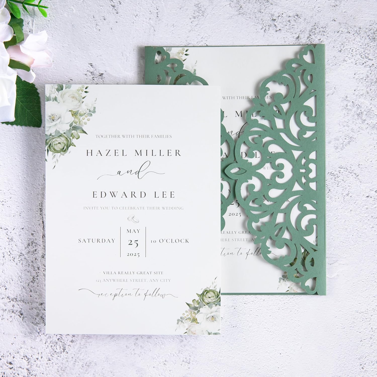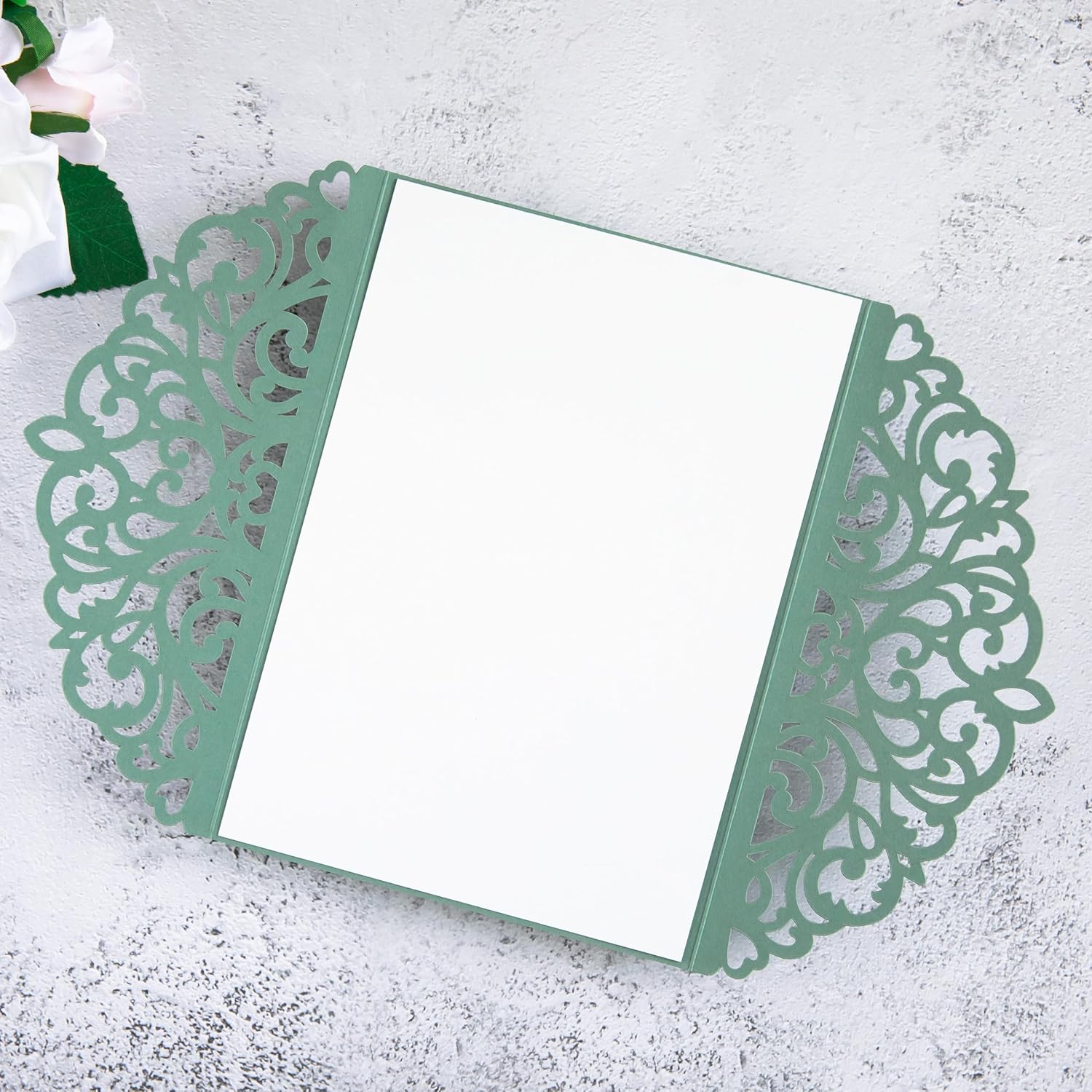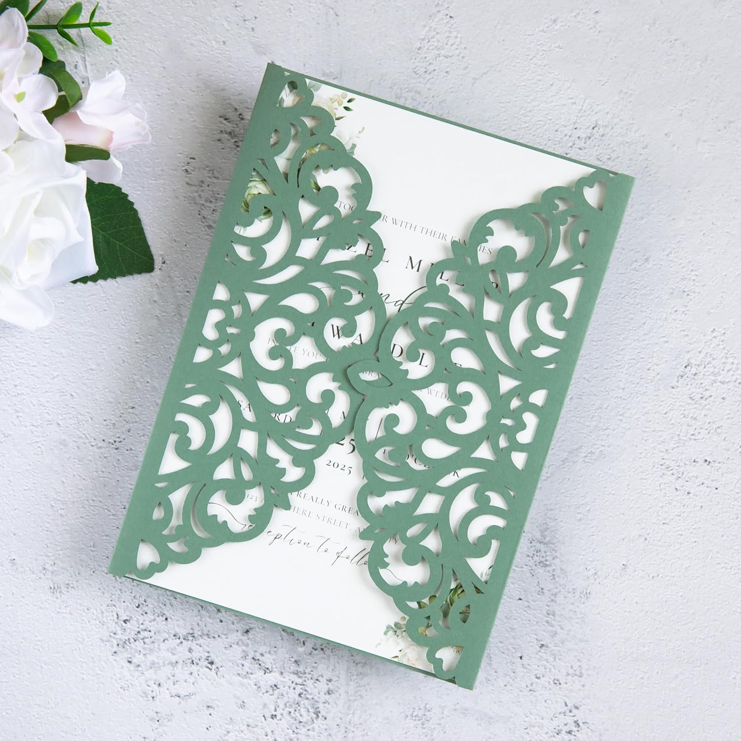 20Pcs Sage Green Laser Cut Invitation Cards With Blank Inner Sheets for Wedding Cards Bridal Shower Engagement Quinceanera Invitation (No Envelopes)