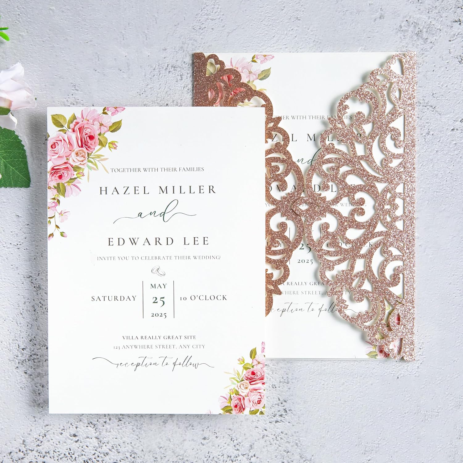 20Pcs Rose Gold Glitter Laser Cut Invitation Cards With Blank Inner Sheets for Wedding Cards Bridal Shower Engagement Quinceanera Invitation (No Envelopes)