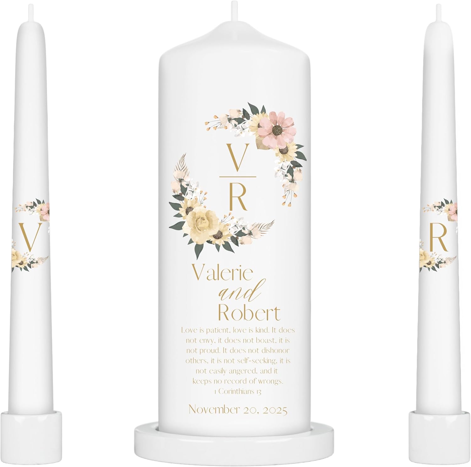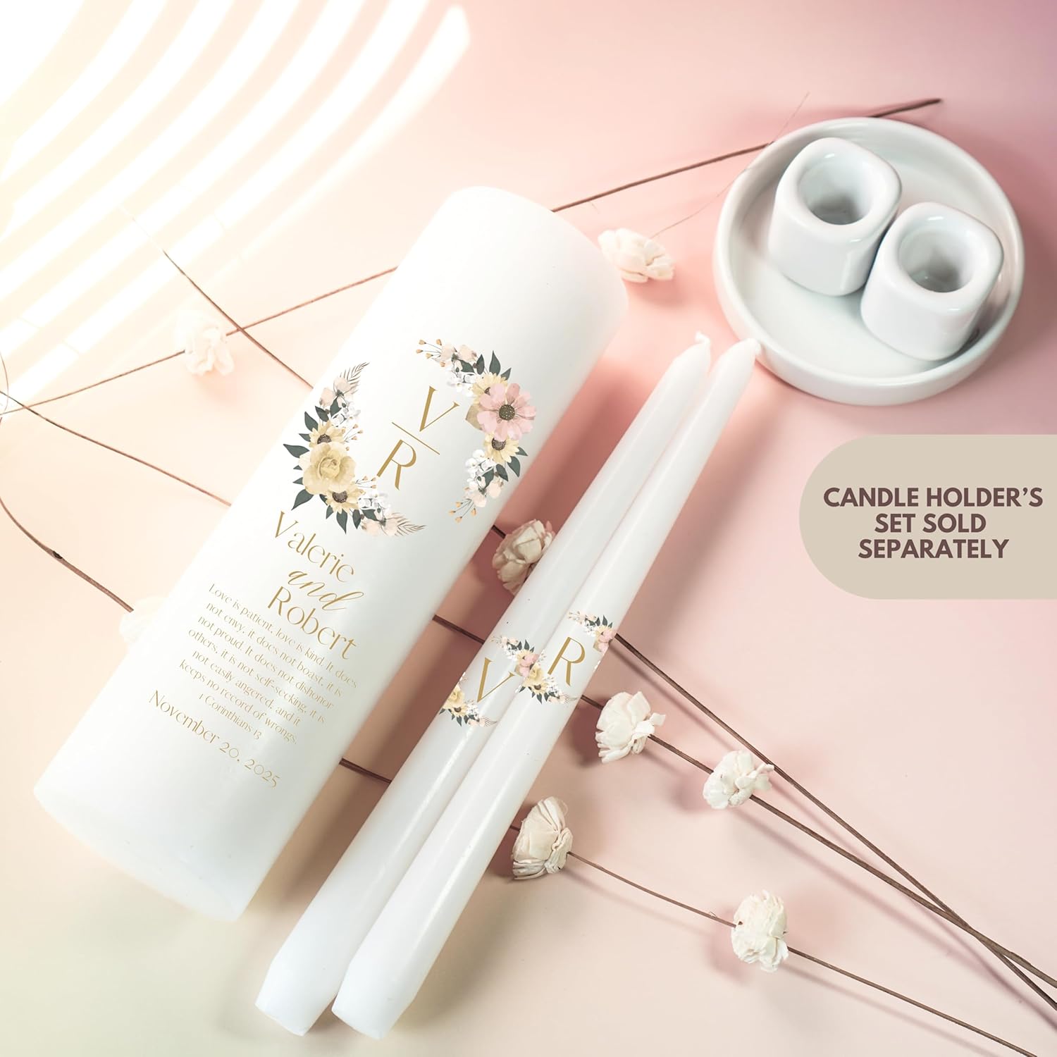 Unity Candles for Wedding, Modern Unity Set, Custom and Personalized Pillar and Taper Candles with Bible Quote, Unscented White Premium Wax, Religious and Wedding Ceremony, Special Events