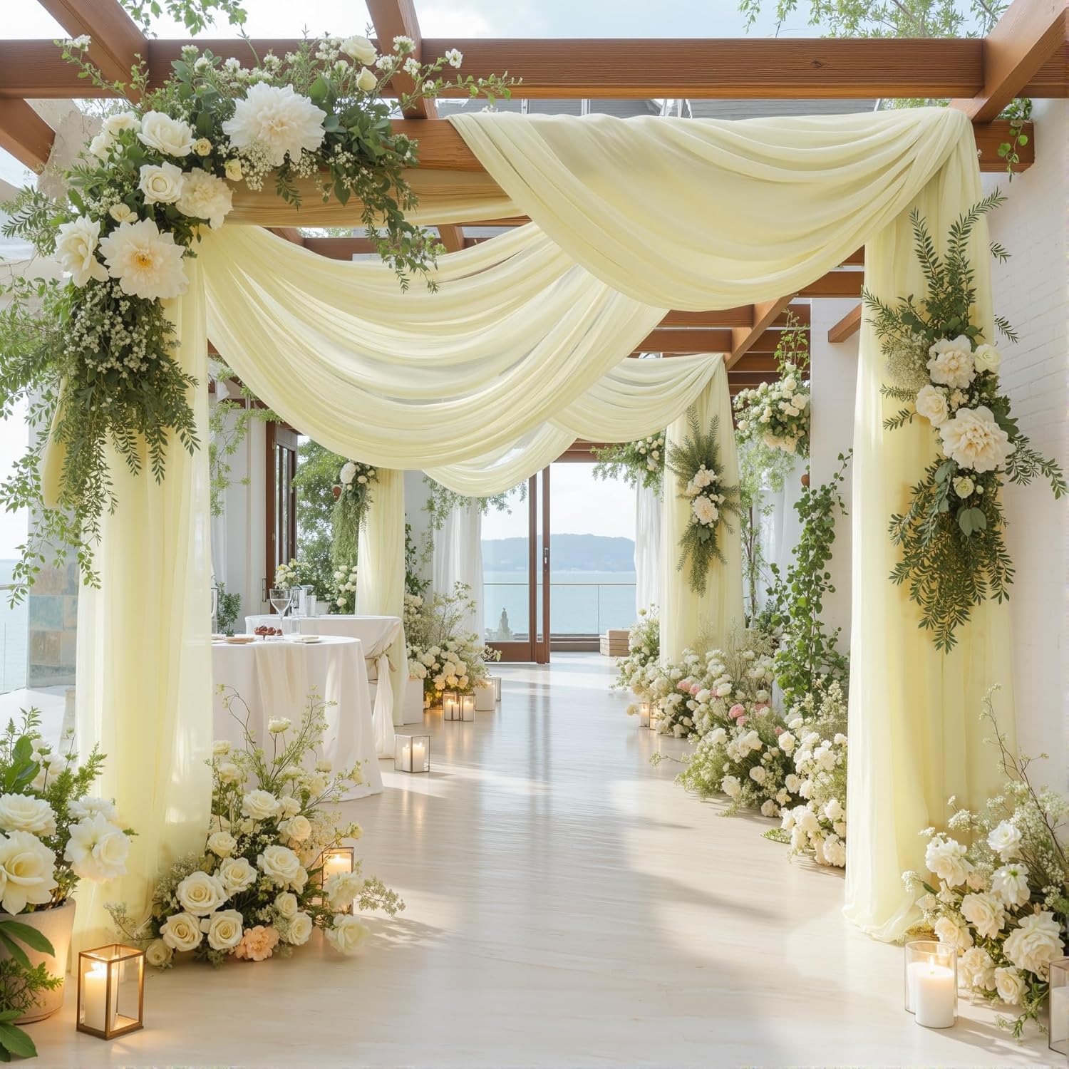 - Ivory Drapery for Wedding Arch Uses: Multi-purpose photography backdrop, perfect for wedding arches, stages, receptions, parties, bridal and baby showers, birthdays, candy buffets, dessert tables, family events, photography, photo booths, ceremonies, windows, wedding ceremony decorations. Pair with flowers, lights or ribbons for an elegant touch