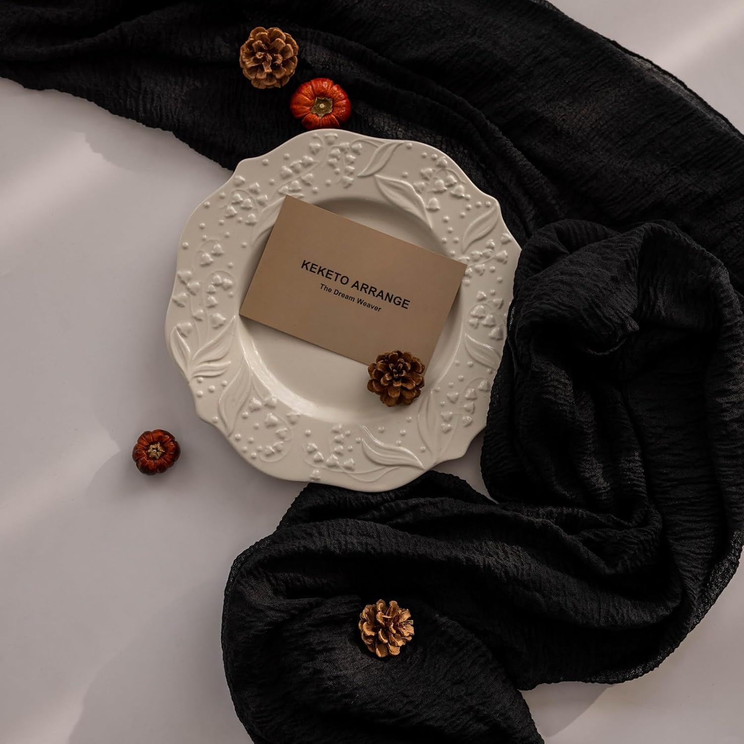 3pcs Halloween Table Runner Black Cheesecloth Gauze Rustic Premium Cotton Cheese Cloth Table Runner 120 Inch 10 FT for Wedding Bridal Baby Shower Long Sheer Boho Decorations