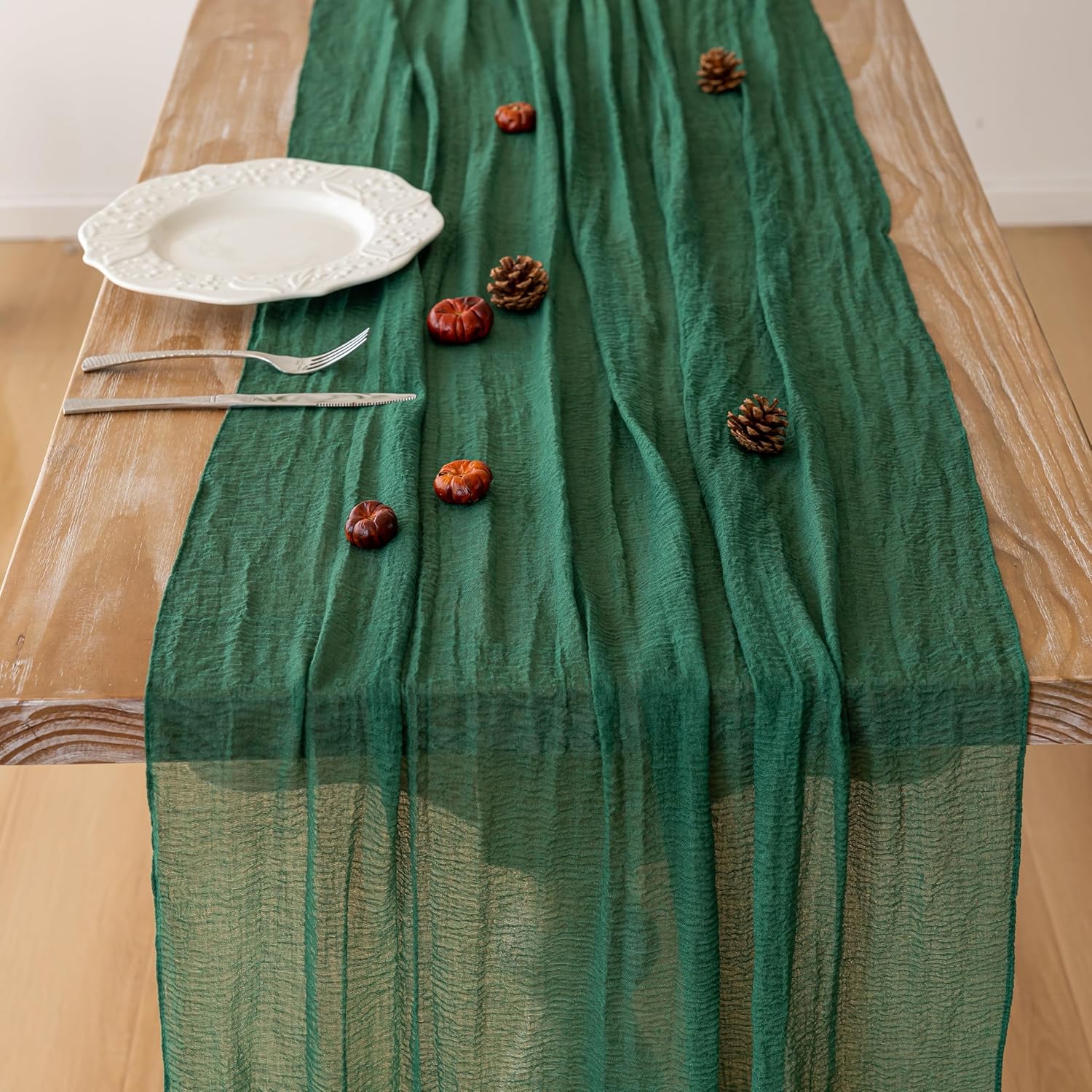3pcs Emerald Green Cheesecloth Table Runner Gauze 120 Inch 10 FT Rustic Boho Cheese Cloth Runner for Wedding Baby Shower Bridal Shower Birthday Party Long Sheer Home Decorations