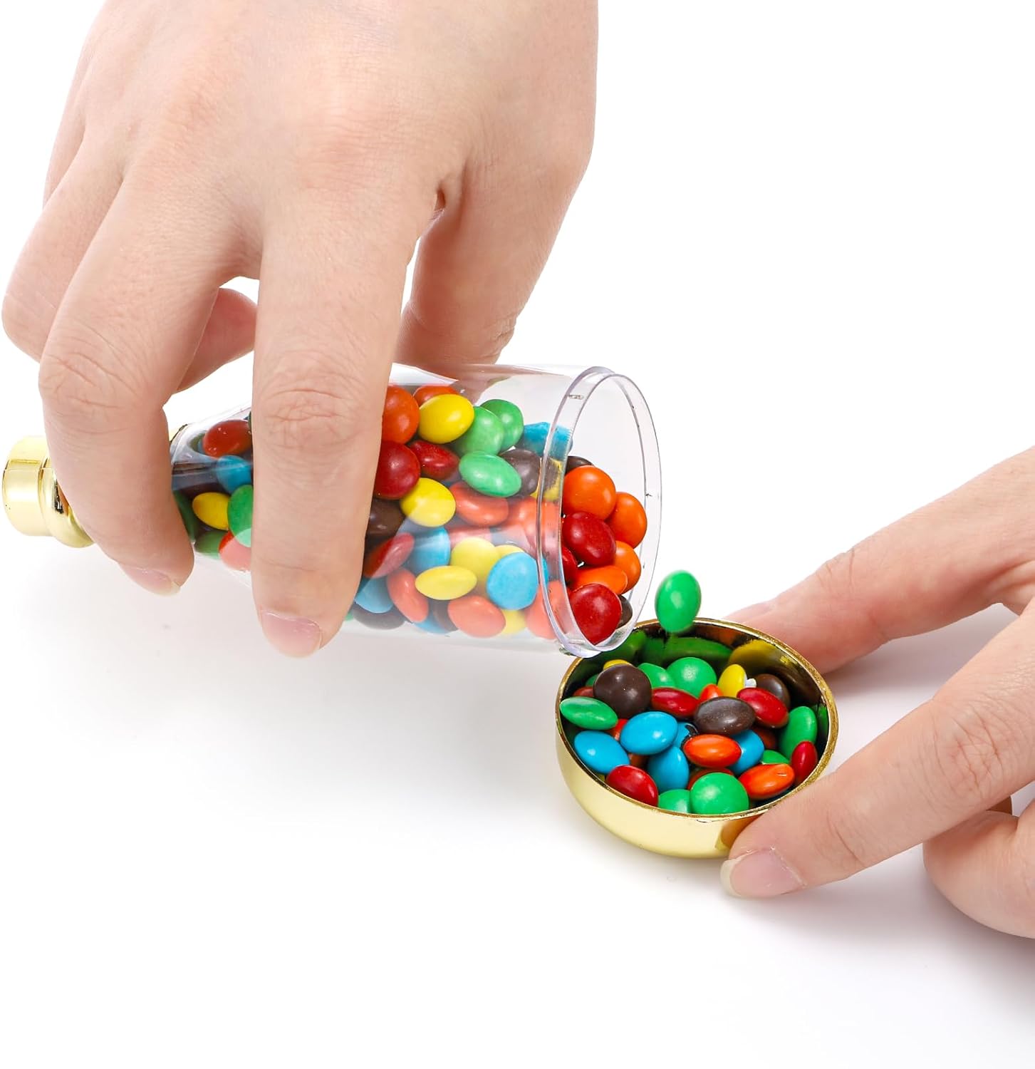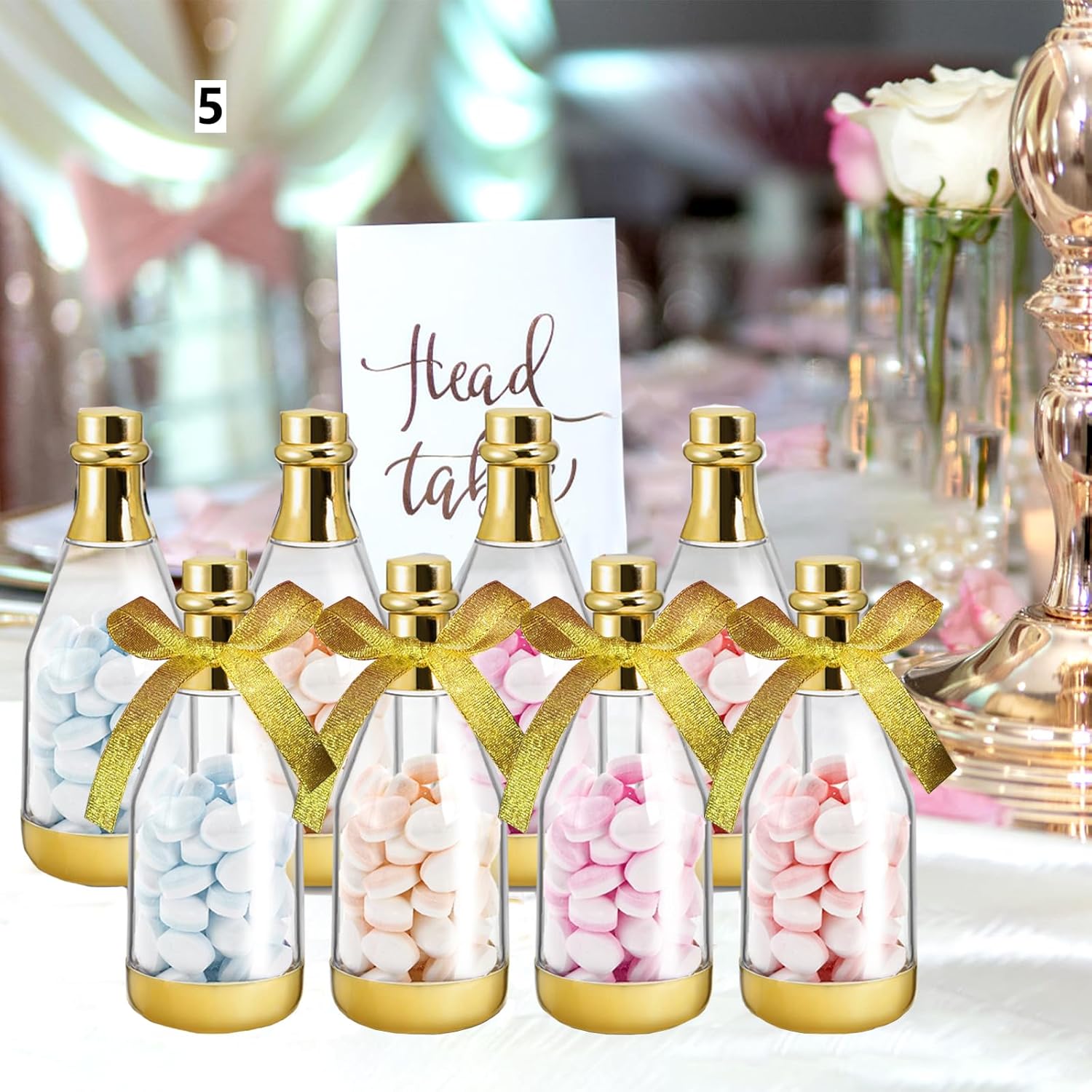 - Easy to Fill: The golden base of the champagne candy bottle are easy to disassembled, the wide mouth easy for you to fill with various types of small candies, chocolates, mints or jelly beans, and they can also be applied to store small accessories, such as pearls, beads and more