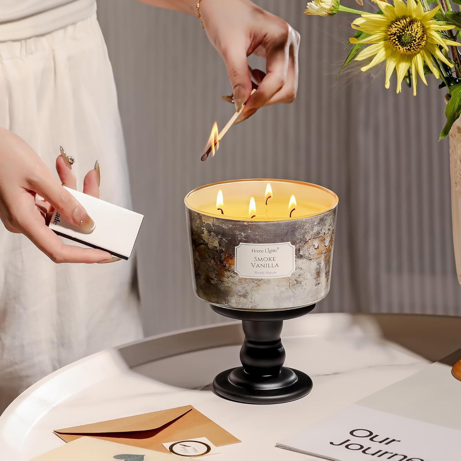 HomeLights Large jar Candle | 4-Wick Long-Lasting Scented Candles, 18oz Natural Soy Wax Candle for Home Scented, Industrial Chic Gifts for Women & Men, Smoke Vanilla