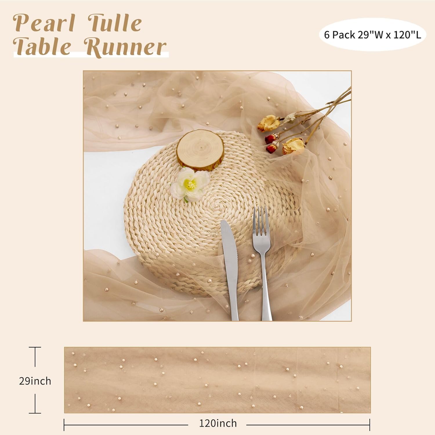- 【Package Include】 You will receive 6 pieces of 29 x 120 inches pearl tulle table runners, the quantity is sufficient for your daily use and replacement needs, it's long enough to fit different size tables and chairs, These tulle table runner with pearls are skin-friendly. There are lots of different colors for you to choose. Perfect to decorate your tables.