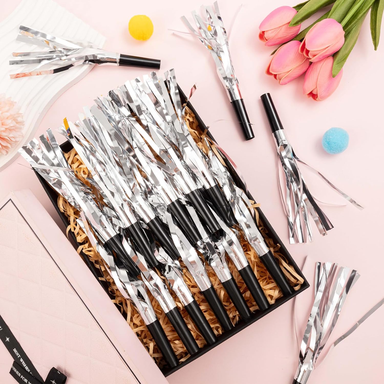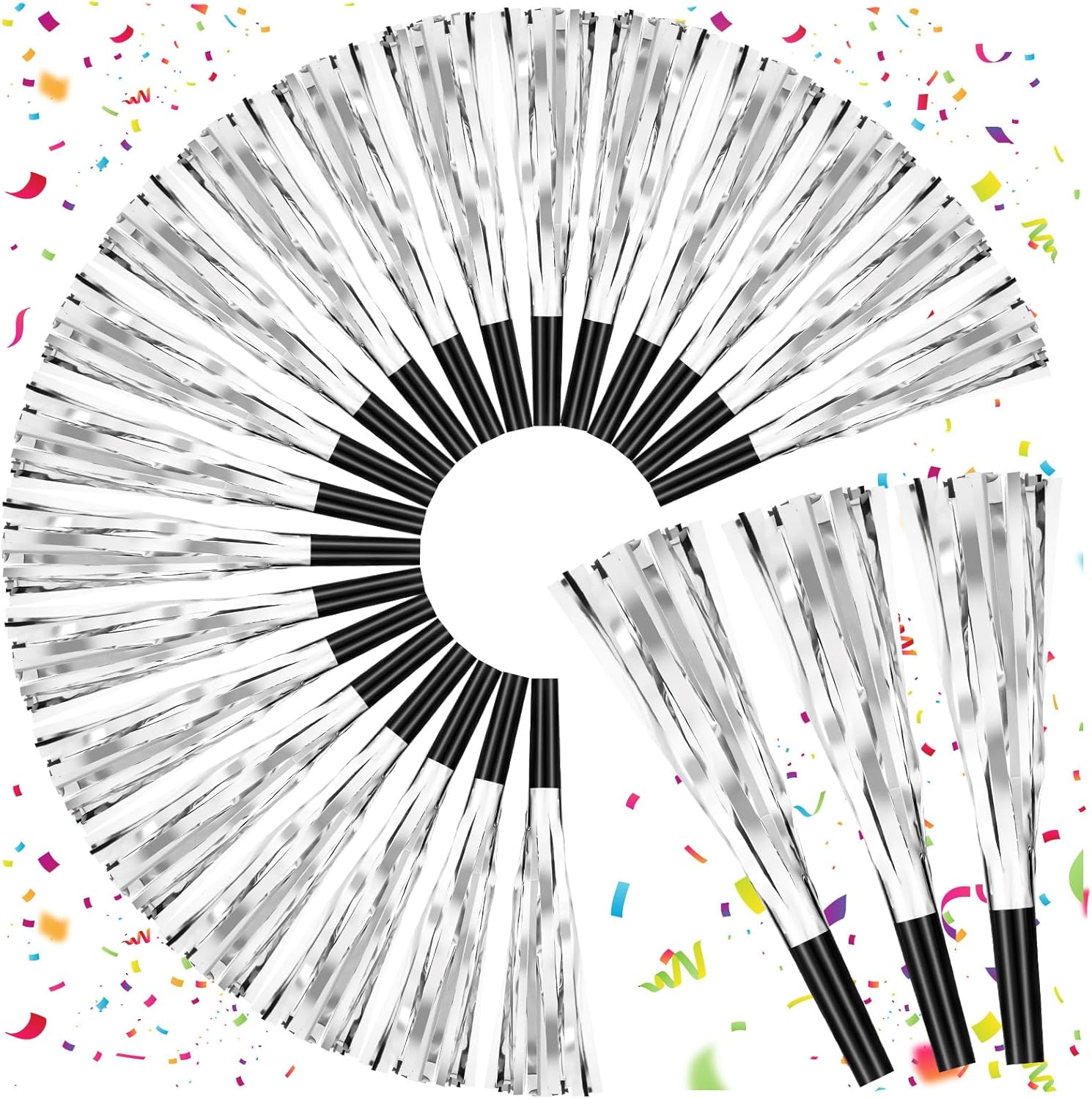 - SAFE TO USE :Our glitter metallic fringed noise makers are easy to use, ensuring a good experience. These party accessories are good for releasing excitement and happiness, creating a lively atmosphere