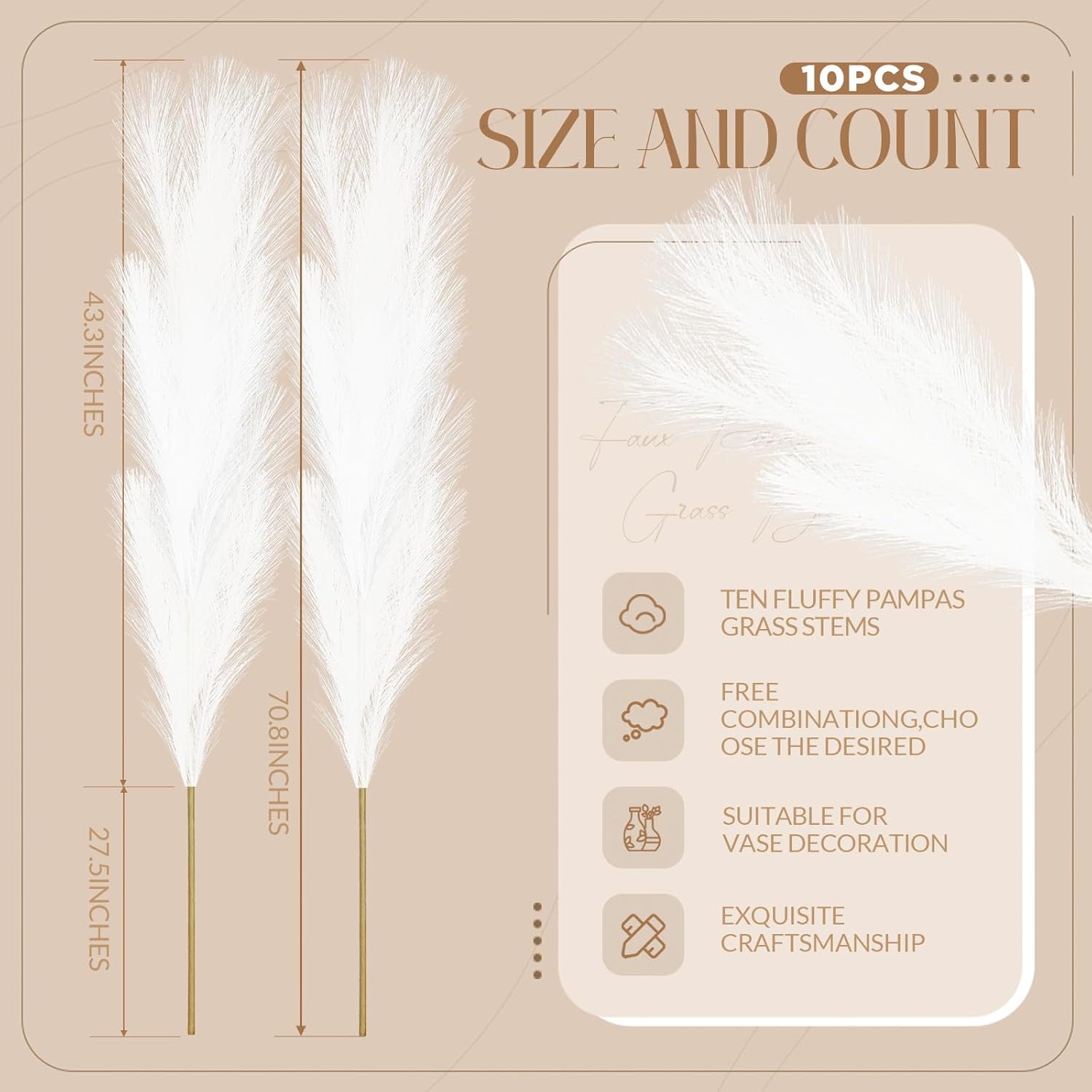 - Artificial Pampas Grass: you will receive 10 artificial Pampas grass, one is made of 3 grasses and 2 branches, you can also freely splice to create a warm home atmosphere