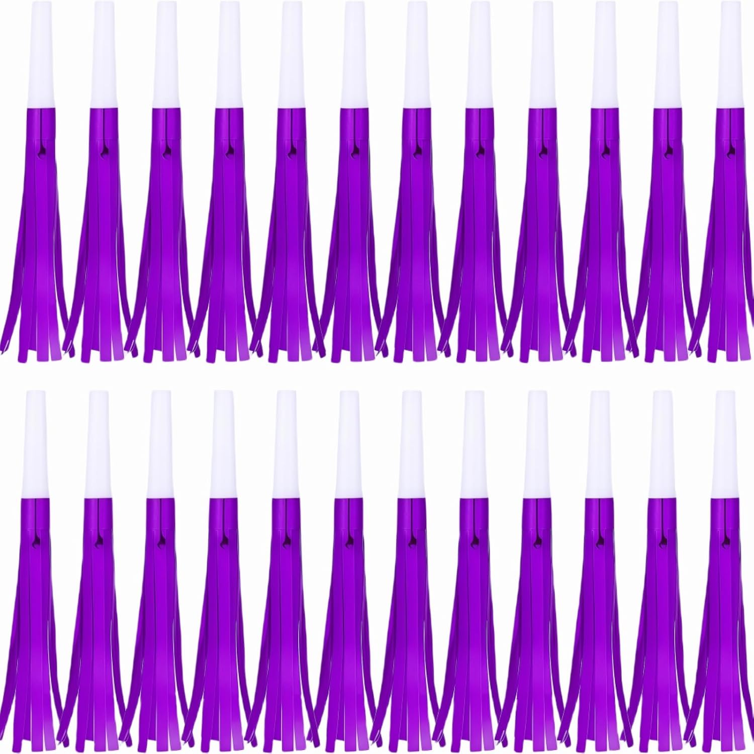 - PACKAGE INCLUDES: Set of 24 purple metallic party horns with glitter finish and decorative fringe for festive celebrations