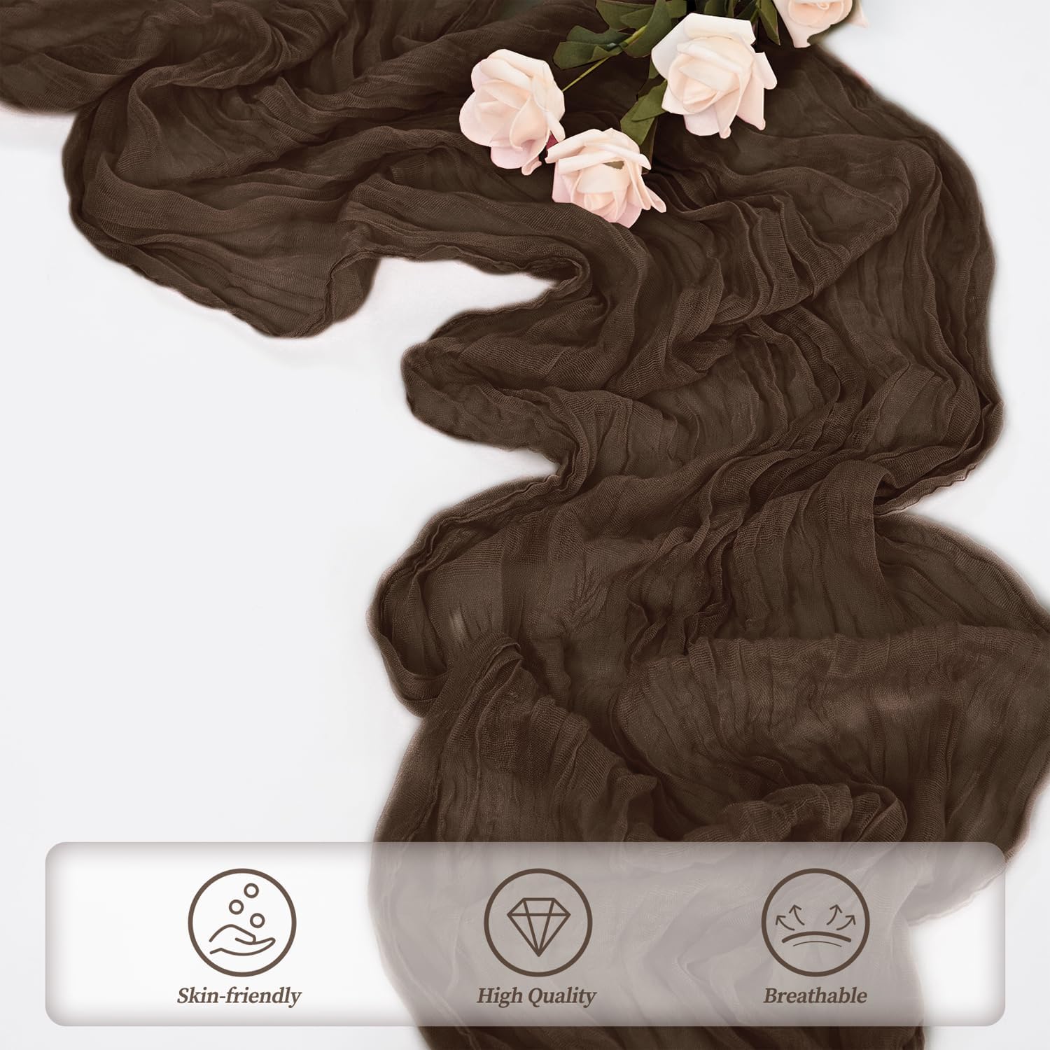 10FT 12 Pack Brown Cheesecloth Table Runner 20 x 120 Inch Long Boho Fabric Rustic Cheese Cloth Table Runner for Wedding Bridal Shower Baby Shower Gauze Sheer Birthday Party Table Decorations