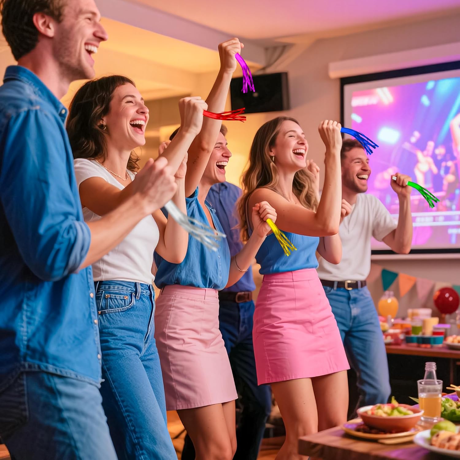 - Noisemakers Party Favors : These funny party blowouts can vibrate furiously and quickly, which are useful to form interesting sounds and joyful visual effect, will bring fun atmosphere to street party, sport game, gathering event and more