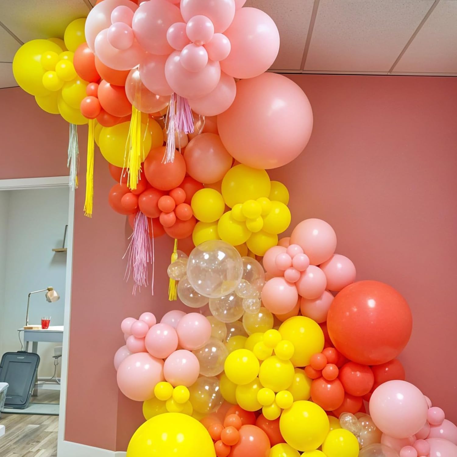 - Easy to Assemble: These hot pink yellow Balloons inflate easily and can be arranged into arches, garlands, or table centerpieces with minimal effort. The included ribbon allows for simple tying, stringing, or hanging—no complicated tools or professional skills needed. Great for party planners or DIY decorators alike who want results without a fuss.