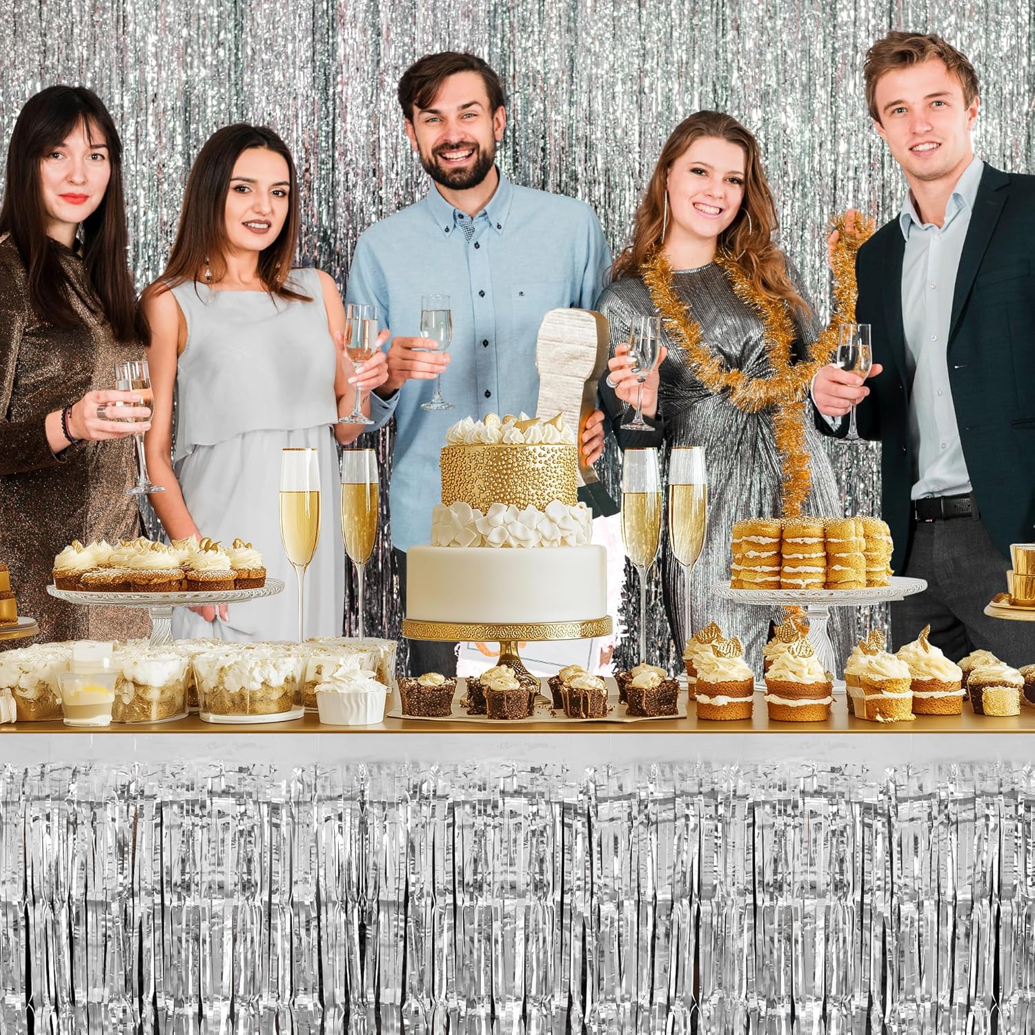 3 Pack Red Green Silver Table Skirts, 29x108" Metallic Foil Tinsel Fringe Table Skirt for Rectangle Tables Streamer Curtains Backdrop, Party Decorations for Birthdays, Weddings, Holidays
