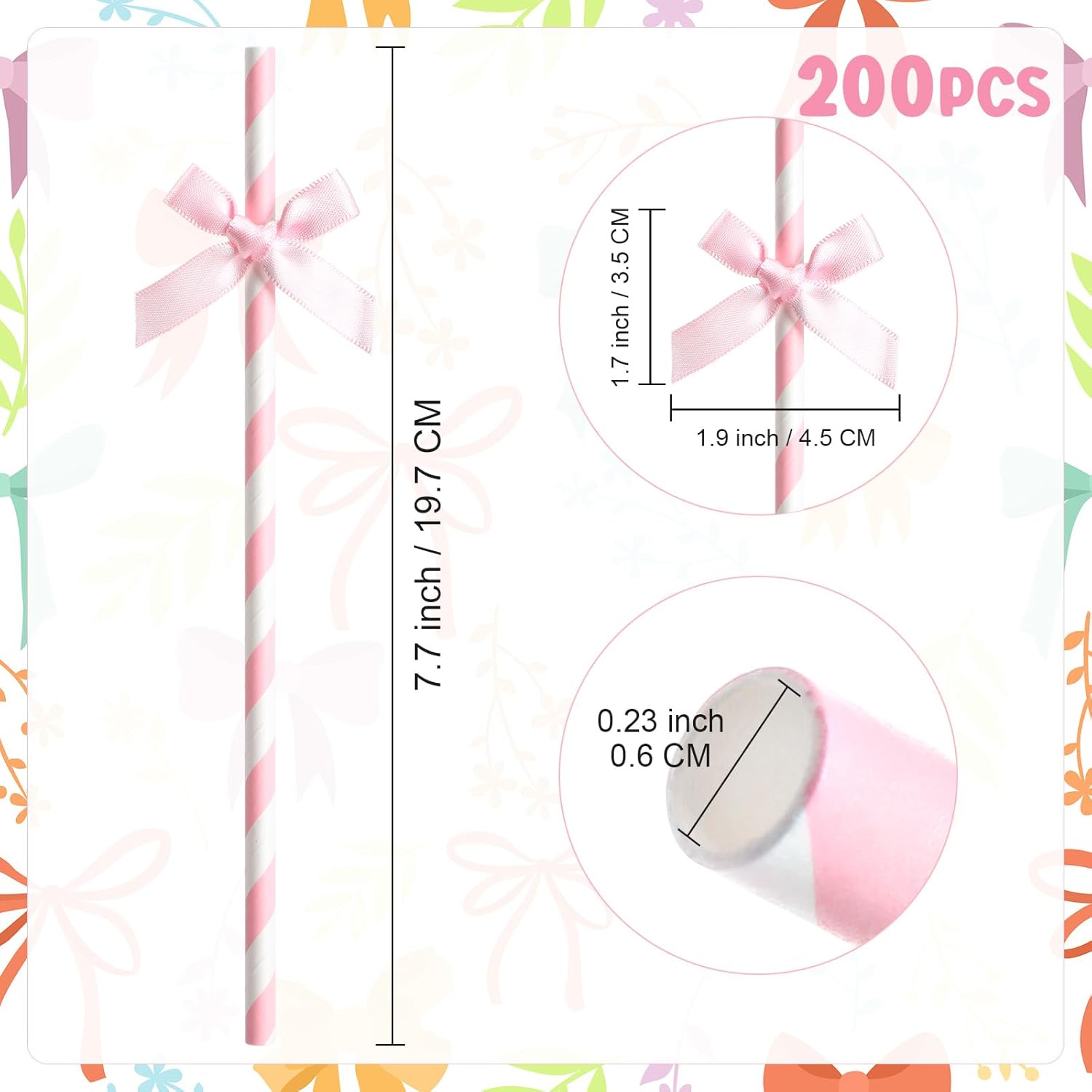 - Large Quantity of Straws: the package contains 200 pink paper straws with bows, each straw is about 7.76 inches/197 mm long and 0.24 inches/197 mm wide; The size is suitable for most drinking cups, and the straws with pink bows and stripes are more exquisite, and the number of straws can also meet your festival or daily replacement apply