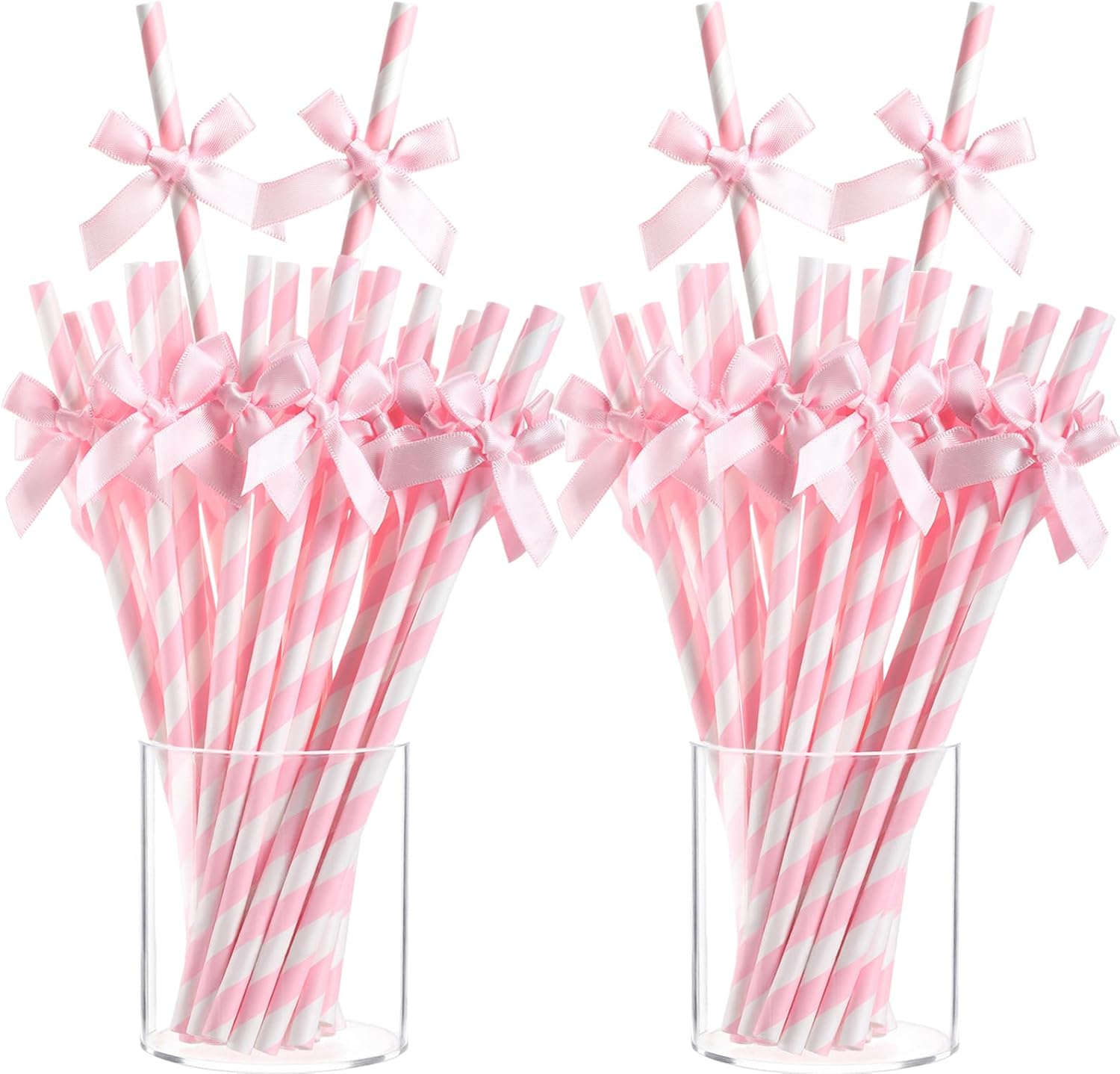 - Pink Theme Design: our paper straws have a pink and white striped design pattern and bow; The style is novel, interesting and elegant, with a strong festive party atmosphere, while making your drinks look more tempting; The bow on the straw has been glued together with glue, so you don't have to waste extra time making it, which can save you time and energy