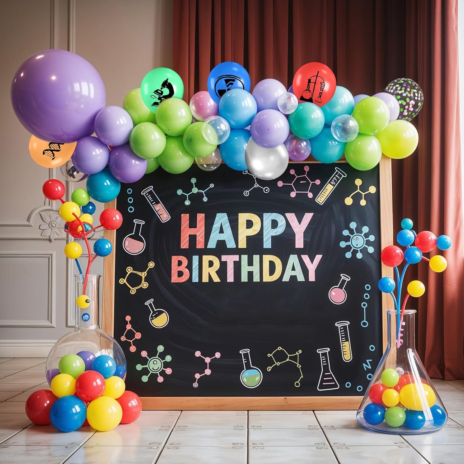 - ăScience-Themed Party DecorăDesigned to energize any science party decorations, these balloons add creativity and color to your celebration. Whether you're hosting a science birthday party for s or decorating a classroom for science week, these balloons provide an exciting touch. Use them to build a balloon arch, photo wall, or centerpiece that showcases fun science icons like beakers, DNA strands, and microscopes