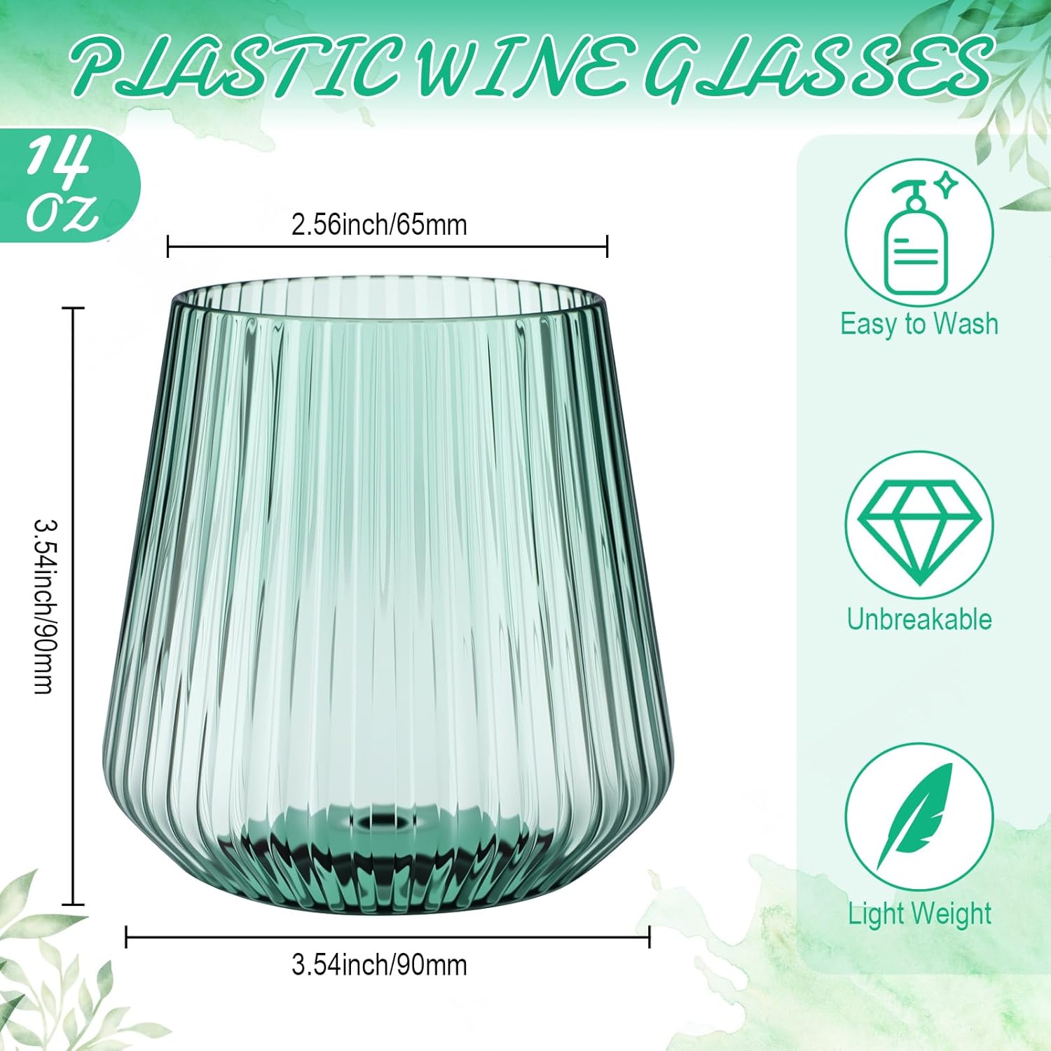 - Generous Package and Size: these ribbed stemless wine glasses come in a package of 50, sufficient to cater to your needs in an event; Each one holds about 14 oz of your beverage and stands firm at a height of about 3.54 inches/ 9 cm, a caliber of about 2.56 inches/ 6.5 cm and a maximum diameter of 3.54 inches/ 9 cm; Its versatile size and caliber make it an ideal fit for various occasions