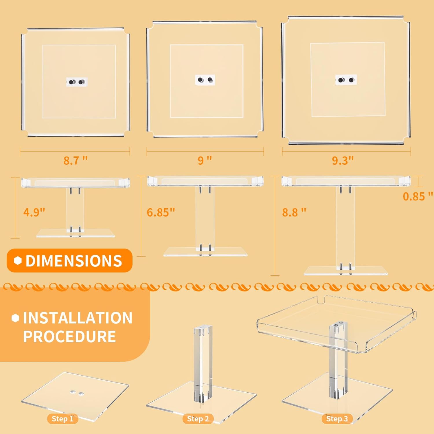- 【Environmentally and Healthy】Our acrylic 3-tier dessert display racks are made using a hot bending process, so there are no adhesives or chemical odours. This makes them safe for use with food