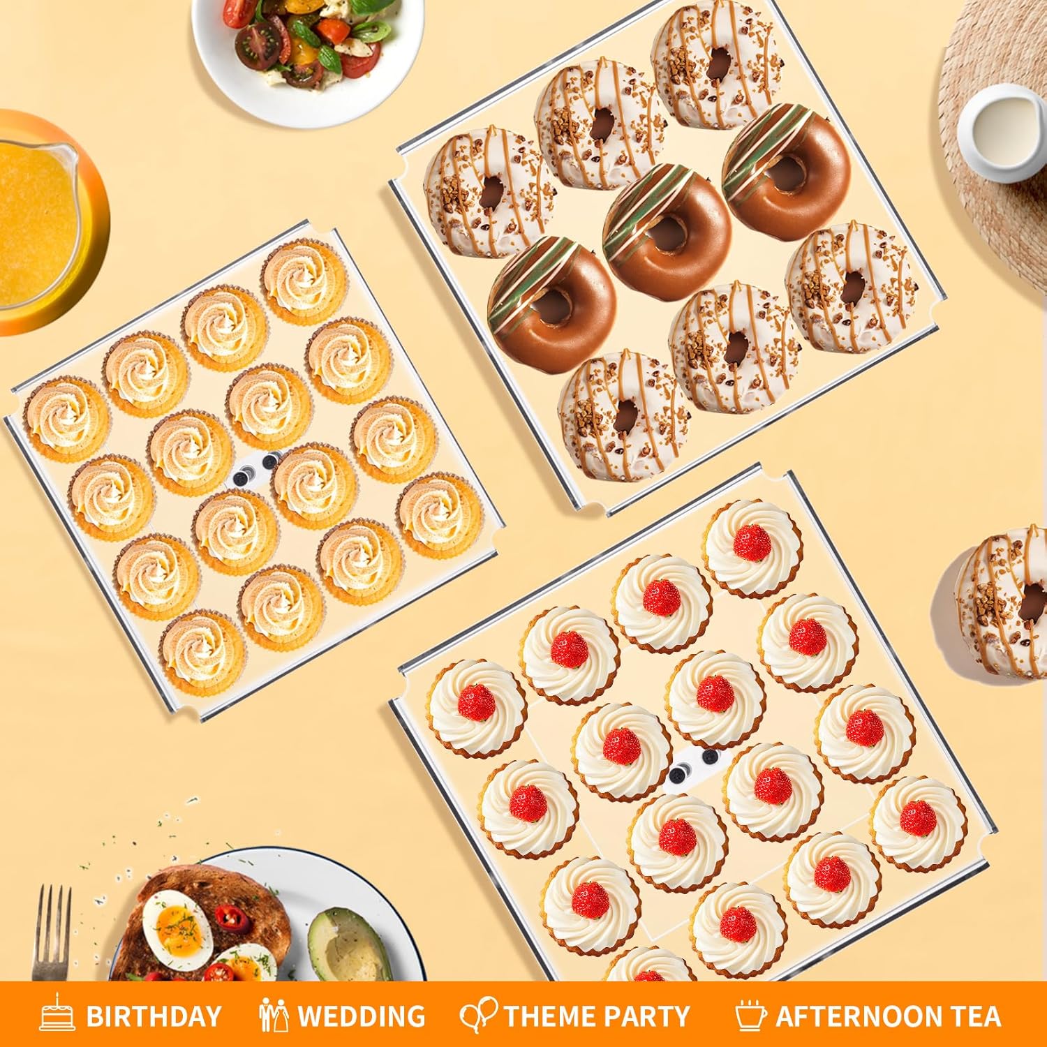 - 【Large Size】The acrylic tray is big enough to hold a lot of food. It can hold at least 54 cupcakes, which is perfect for big events