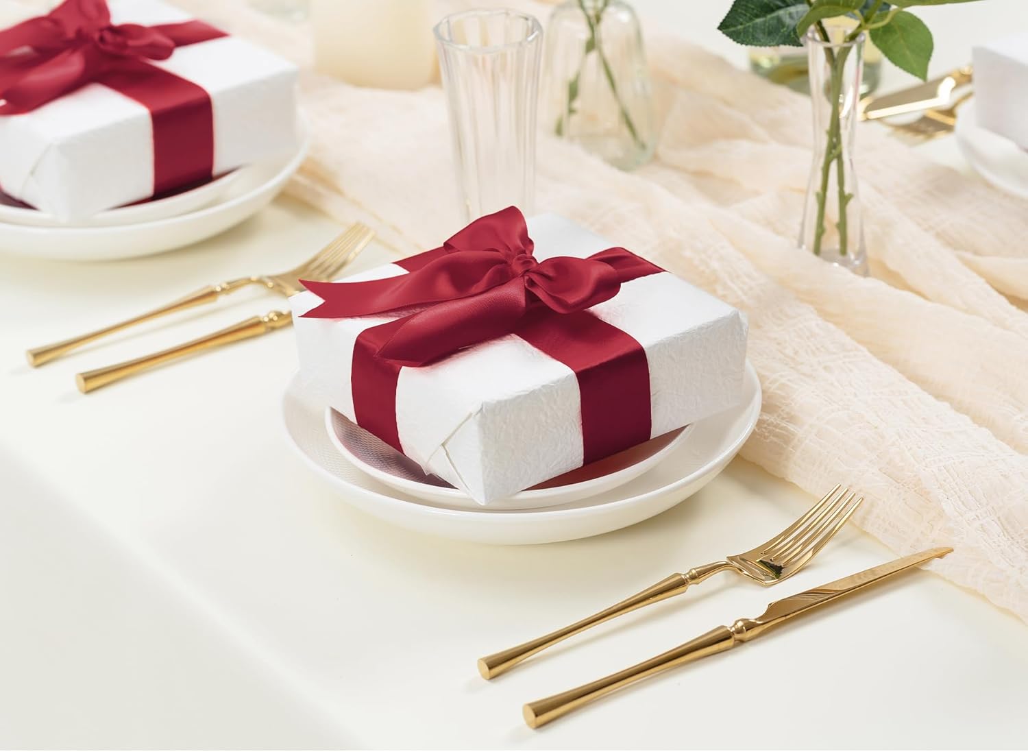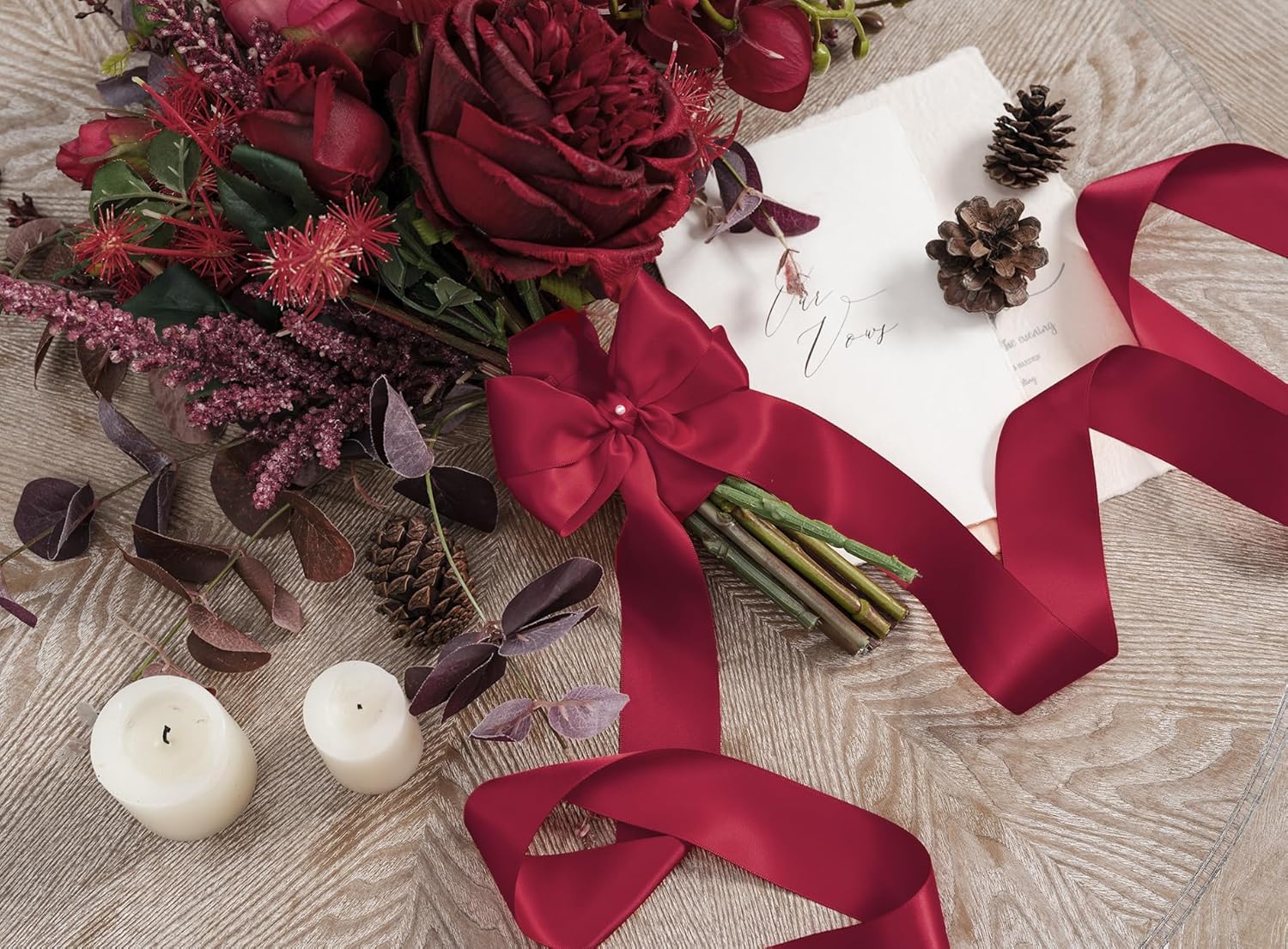 Burgundy Satin Ribbon 1-1/2 Inch x 50 Yards Double-Faced Ribbons for Christmas Gift Wrapping Flower Bouquet Wedding Paper Bows Invitations Crafts