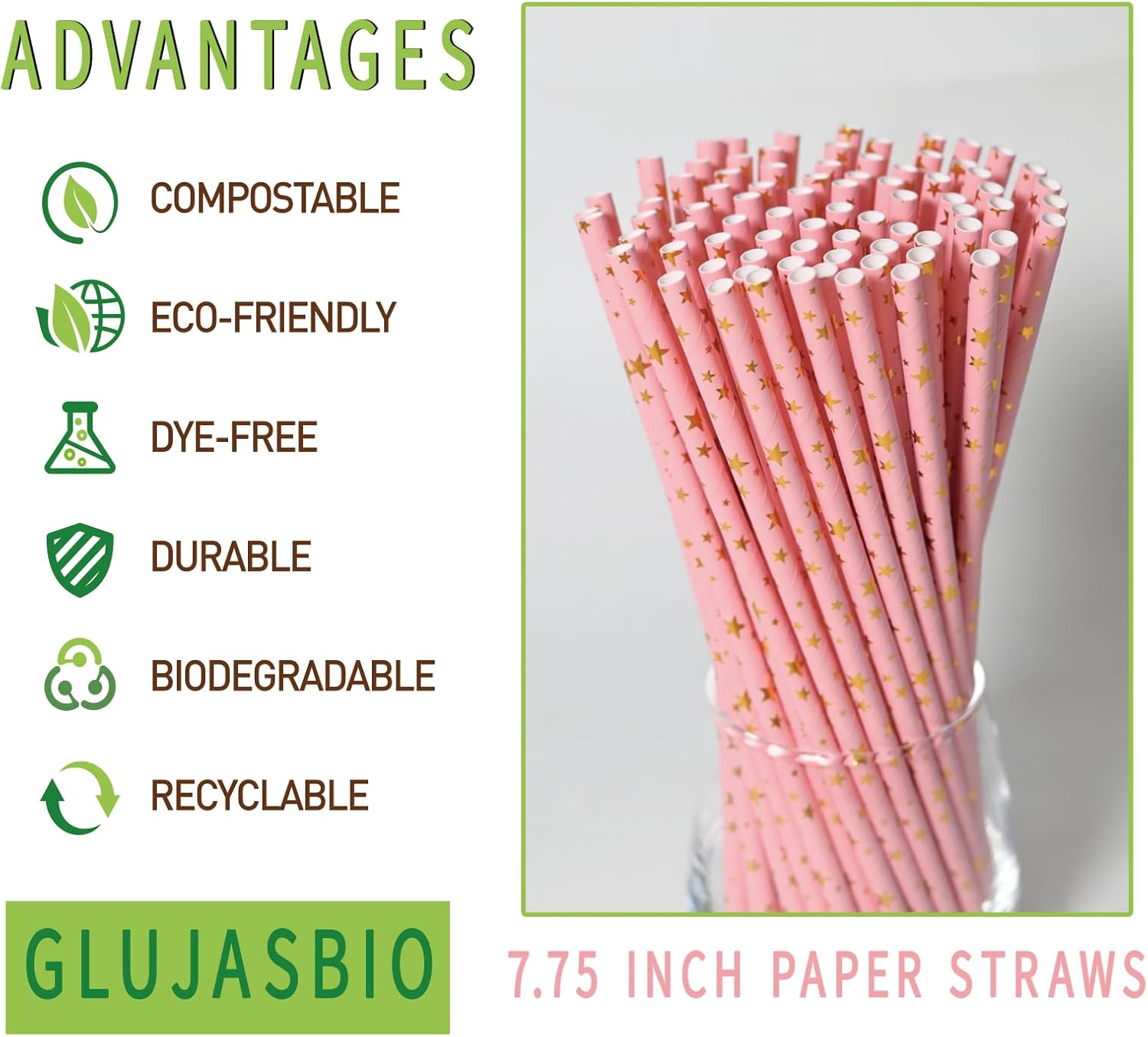 - Sturdy and Stylish: Pink and gold straws are made of food grade materials,each pack has 100 cute paper straws