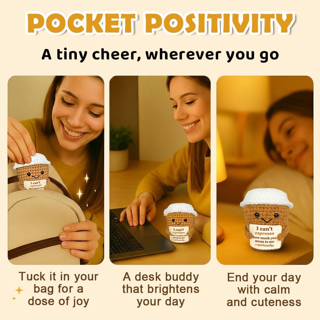 Coffee Lover Gift for Women Men, Cute Brithday Gifts for Boyfriend Girlfriend, Romantic Anniversary I Love You Gift for Him Her Couple, Positive Espresso Handmade Crochet