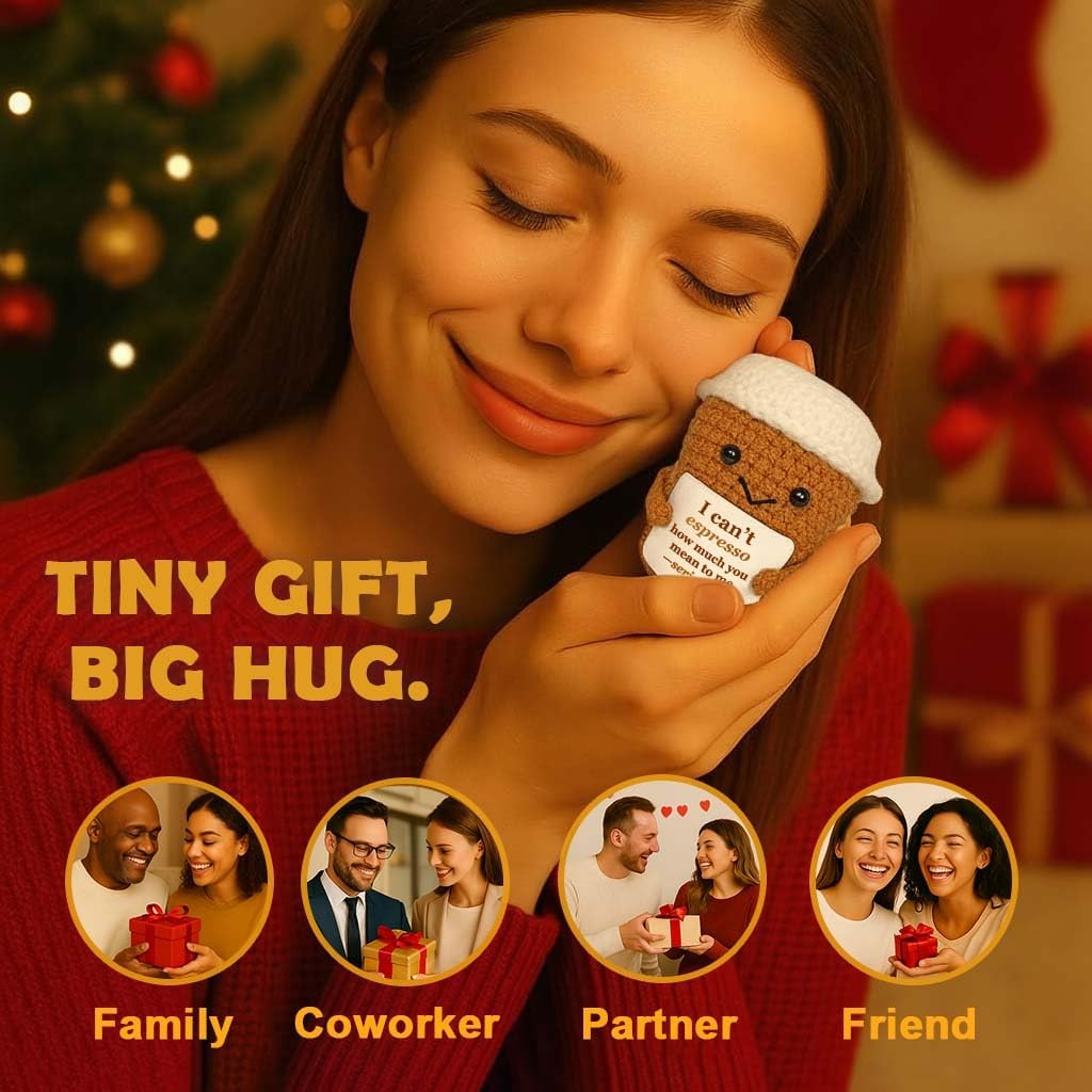- Coffee Lover Desk Decor – With its espresso pun and adorable design, this plush doubles as a coffee lover gift and a charming desk accessory. A sweet reminder of love in everyday life.