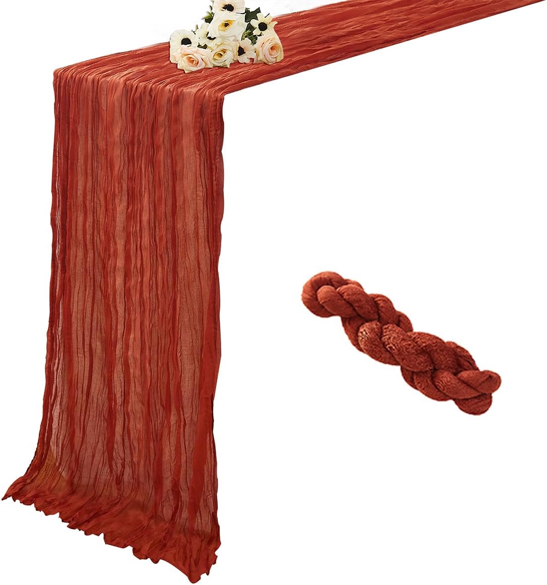 1 Pack Cheesecloth Table Runner 120 Inch 10 FT Boho Rustic Gauze for Wedding Baby Shower Party Farmhouse Summer Home Decor Washable (1, Terracotta)