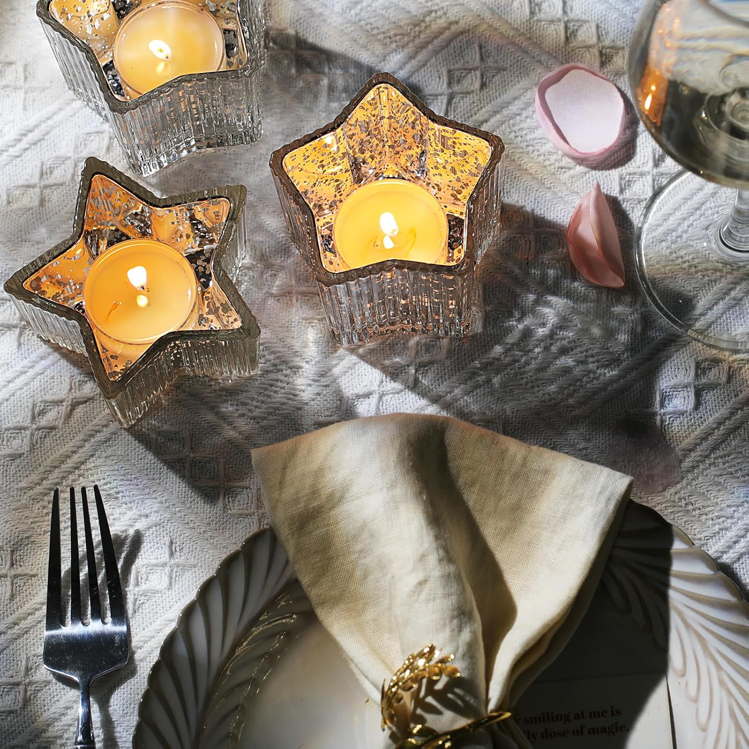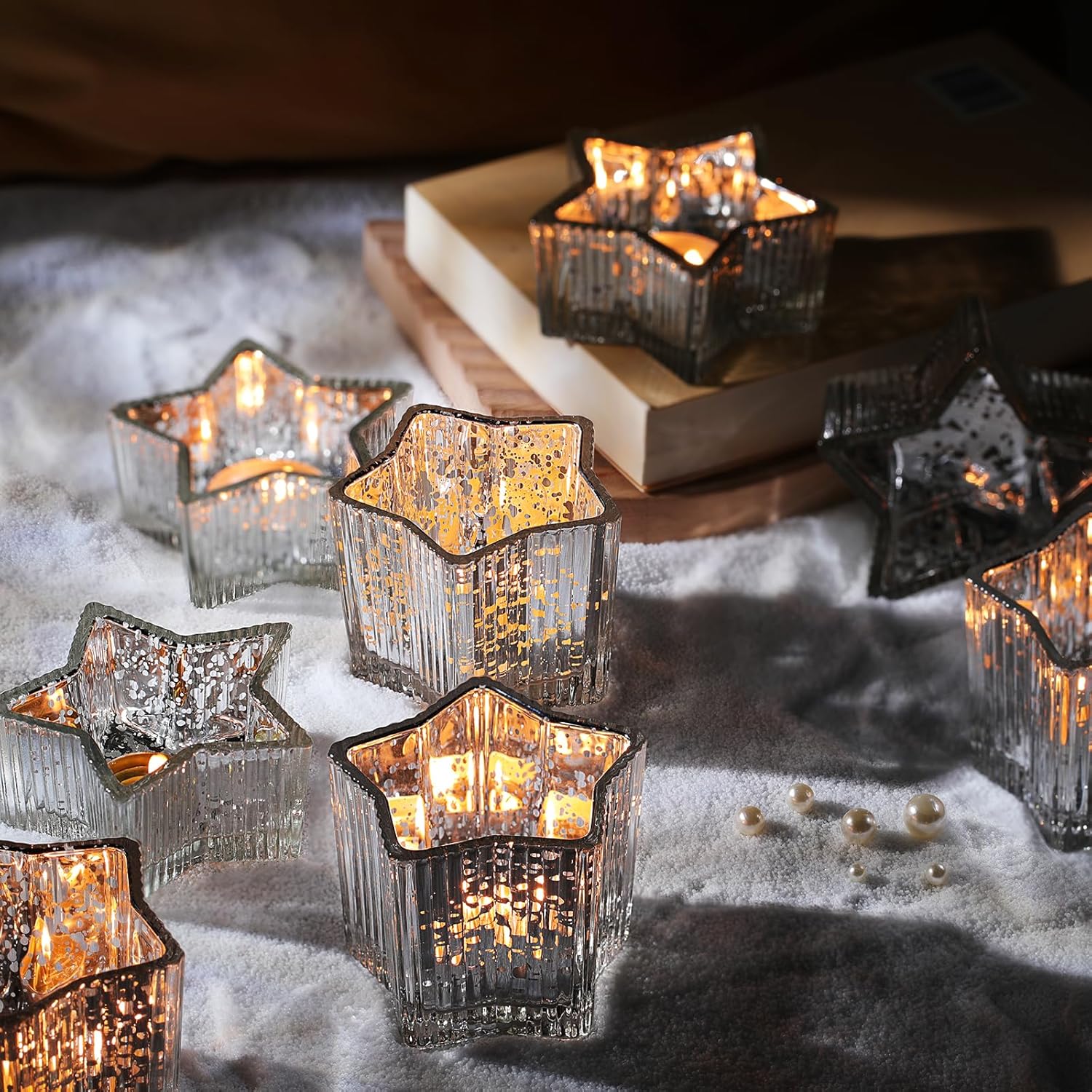 - Elegant silver-Plated Star Candle Holders β This set of 10 votive candle holders features a stunning silver-plated finish with a vertical star design, perfect for creating a warm, celestial glow with tea lights candle holders or flameless LED candles.