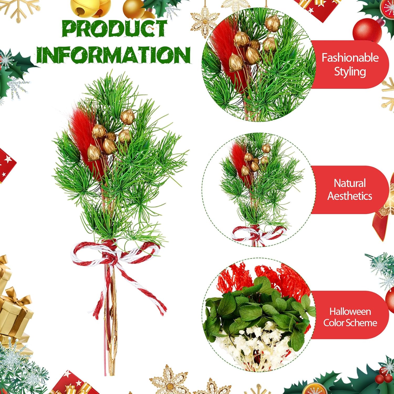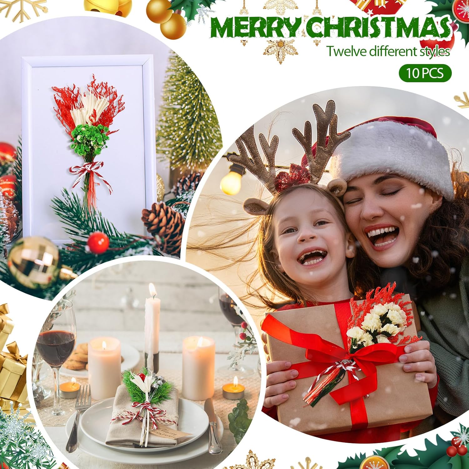 10/12/24 Pack Dried Flowers for Vase Various Mini Bouquet Dried Small Wildflowers Natural Real Flowers Bulk for Crafts DIY Wedding Decor (10, Christmas Color1)