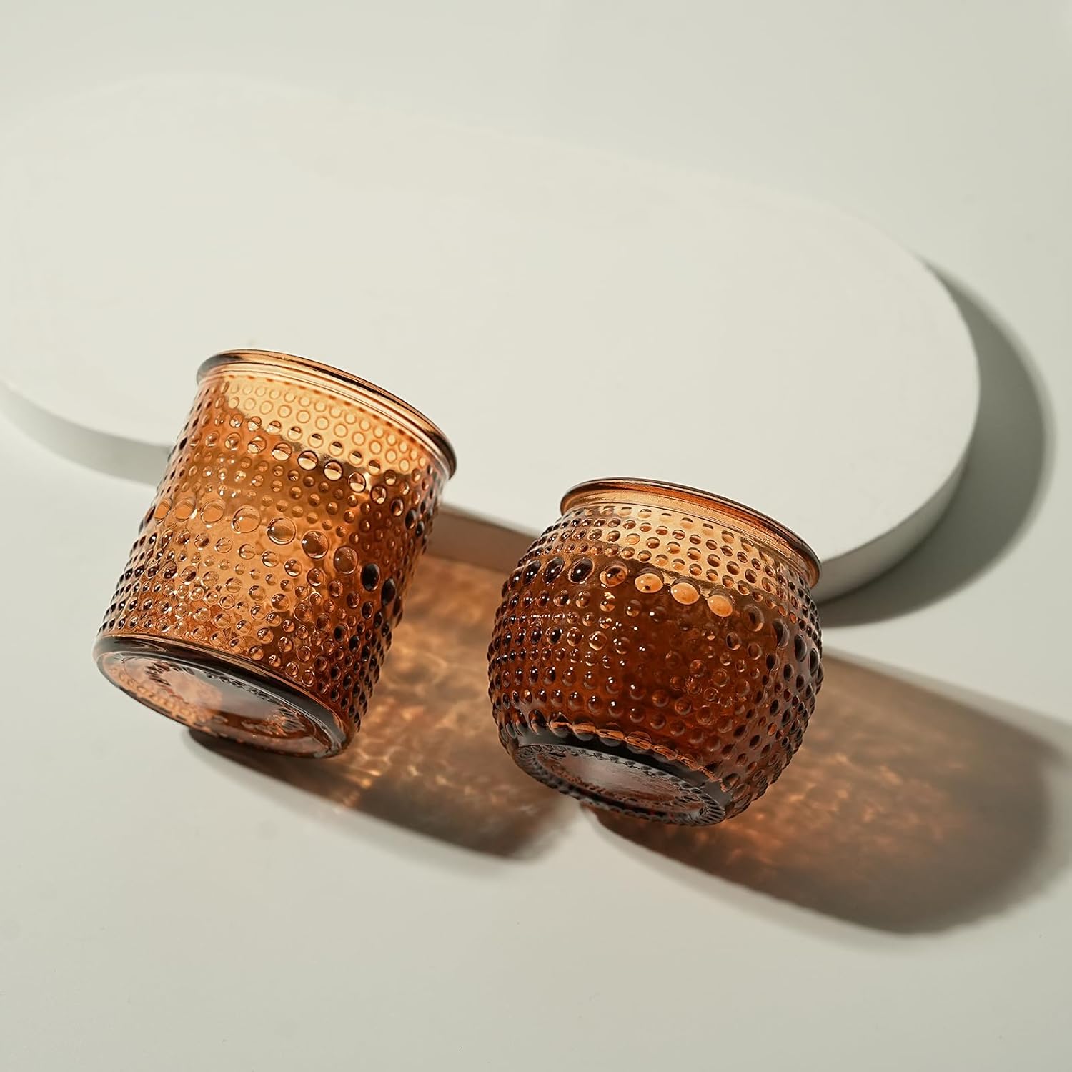 - Elegant Clear Votive Candle Holders: These amber votive candle holders bring a clean, versatile charm to any space, allowing the warm glow of candles to shine through unobstructed. Perfect for complementing existing decor styles, from modern minimalist to classic vintage, they add a touch of understated sophistication