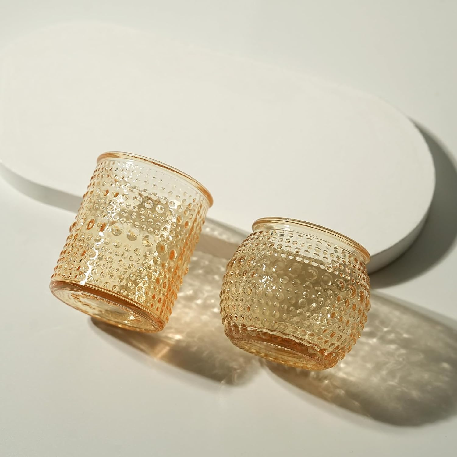 - Sparkling Dot Votive Candle Holder: The gold glass, adorned with delicate dots, catches and reflects light beautifully, enhancing the candle’s glow with a radiant, shimmering effect. Perfect for creating a festive or upscale atmosphere