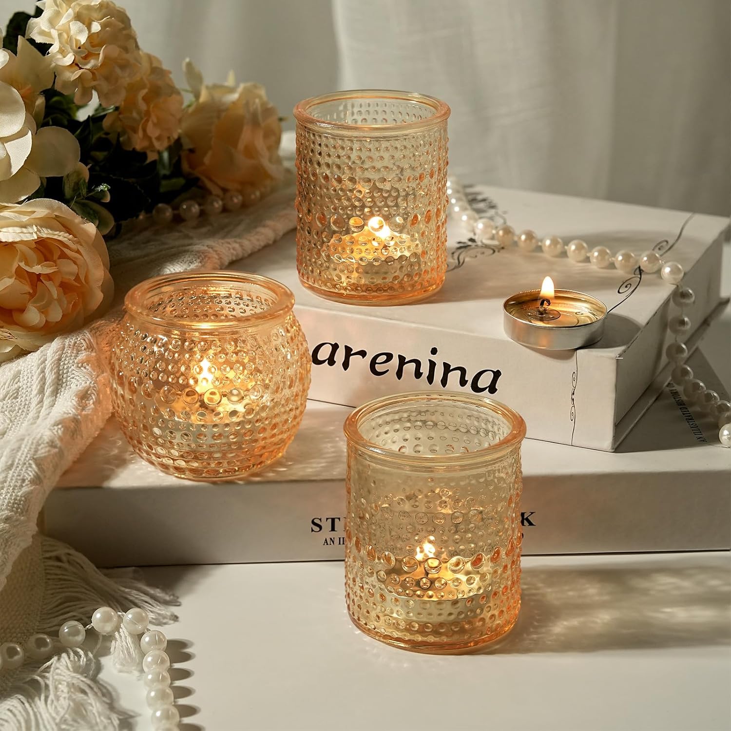 - Luxurious Gold Votive Candle Holders: Elevate your decor with these opulent gold candle holders, designed to bring warmth, richness, and a touch of glamour to any space. Their metallic finish instantly adds a sense of luxury and celebration