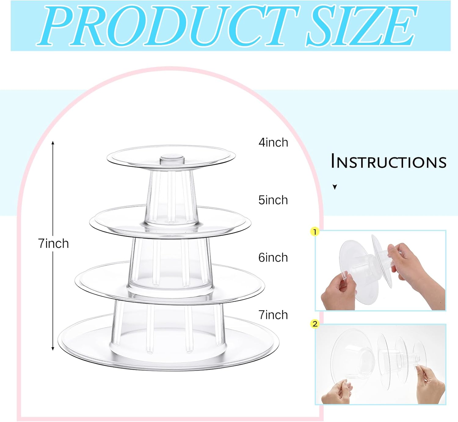 - Appropriate Sizes: our clear cupcake holders have different sizes on them, the height of them is about 10 inches, and the diameter is about 4 to 9 inches, they can hold about 92 to 95 macarons