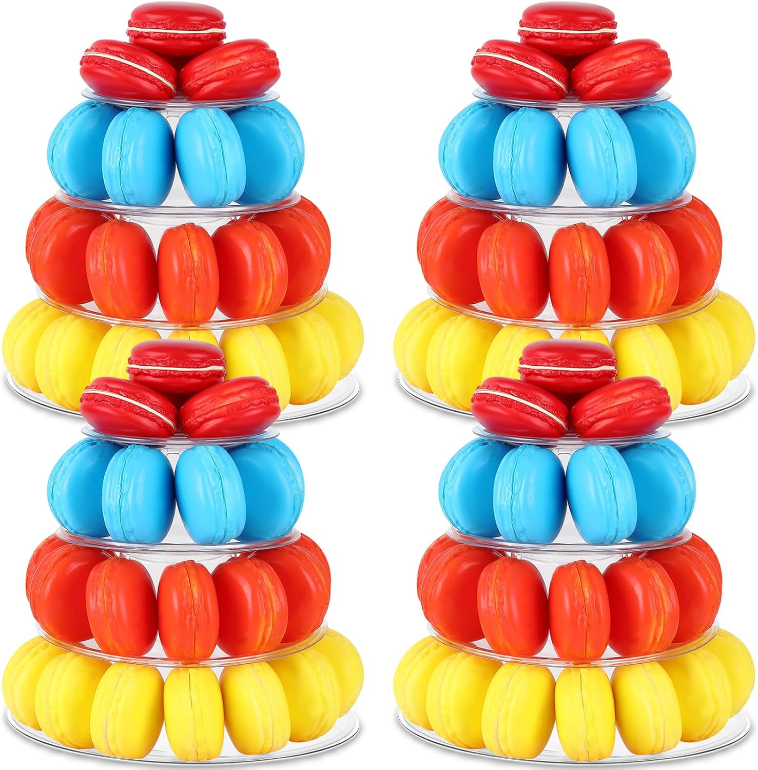 - Sufficient Quantity: you will get 4 pcs of macaron stands display in clear appearance, they are designed with 4 tiered stands, which allows you to put many items on them, bringing you more convenience
