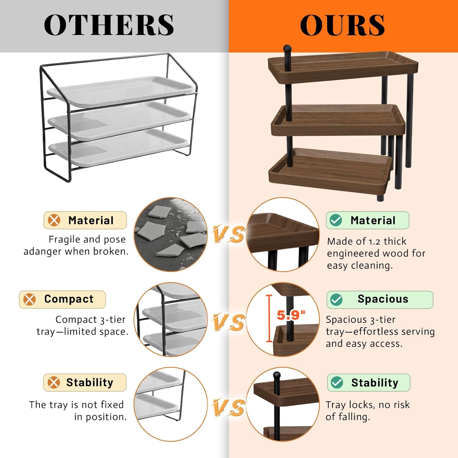 - Spacious & Practical Tray Sizes: With tray sizes of 15.7" x 7.8", 14.5" x 7.8", and 13.4" x 7.8", this stand offers more space than similar models, making it perfect for displaying a variety of items. Hold more cupcakes, desserts, fruits, cookies, or other treats with ease.