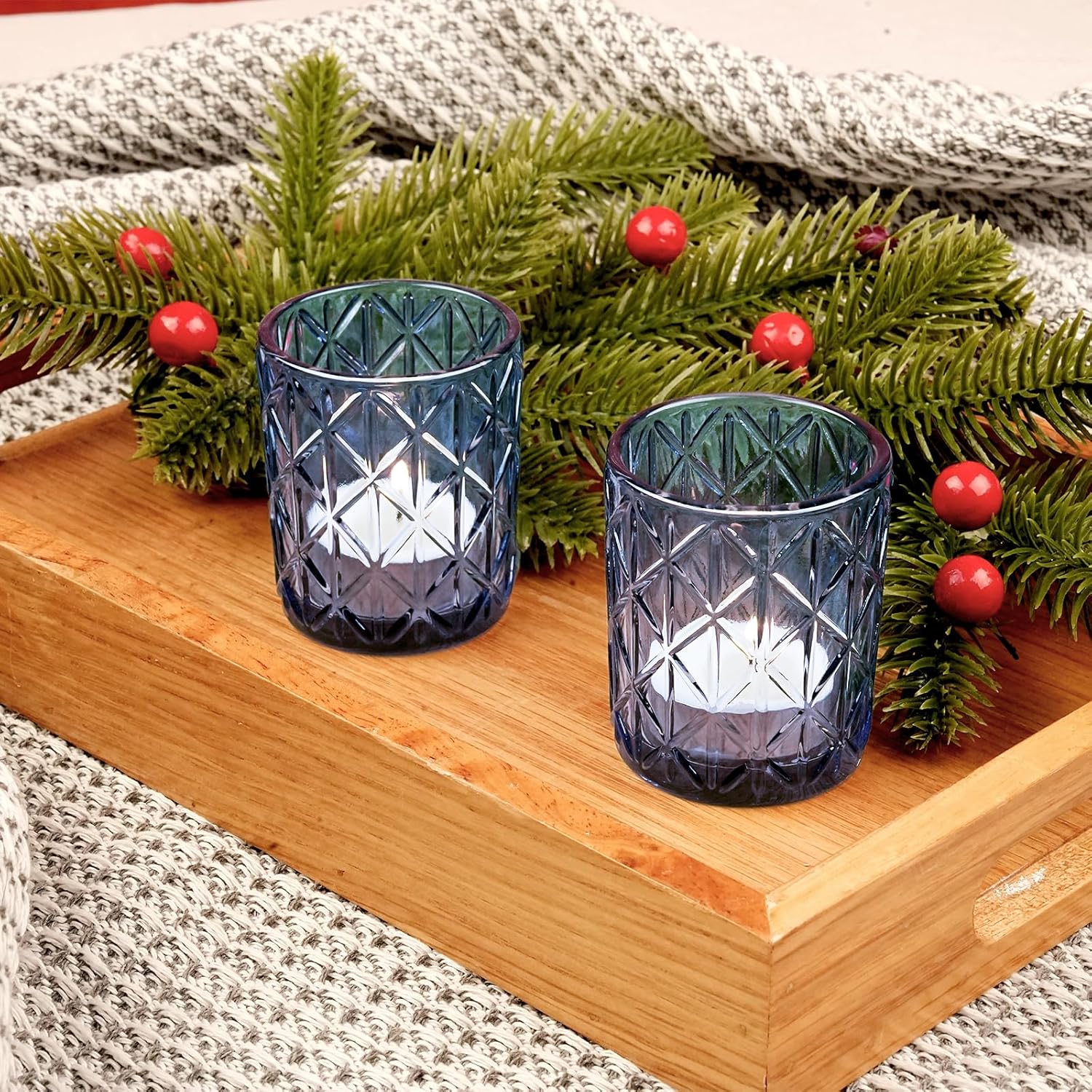 - π― 24 Piece Candle Holder Set: Package includes 24 blue glass votive candle holders, plenty of them for your family. The height of each tea light candle holder is 2.5 inches/6.5 cm and the diameter of the bottom is 2 inches/5 cm.